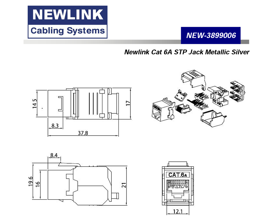 Newlink Keystone Cat6A STP Jack - Metallic Silver