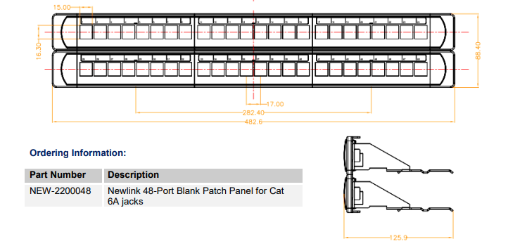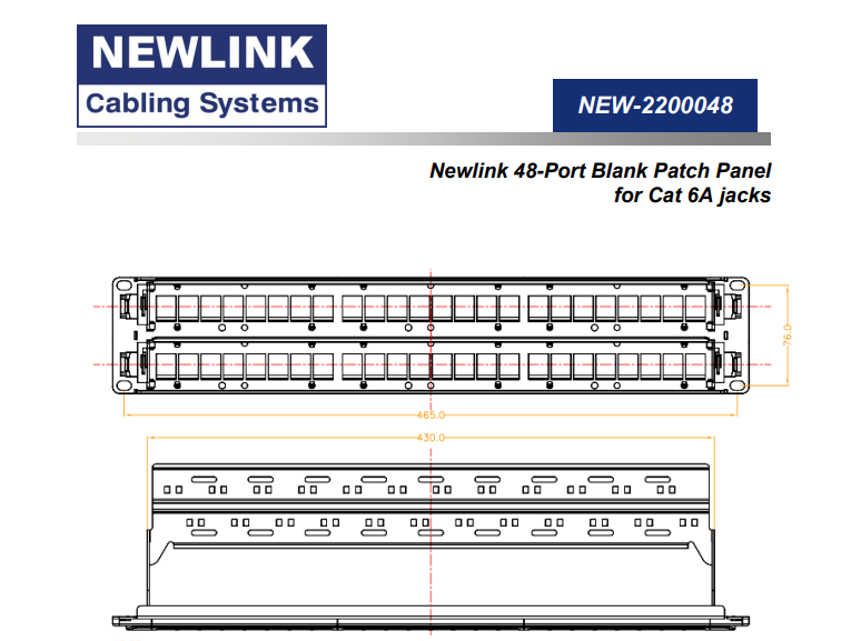 New Link 48 Port Patch Panel Blank for Cat 6A Jacks (NEW-2200048)