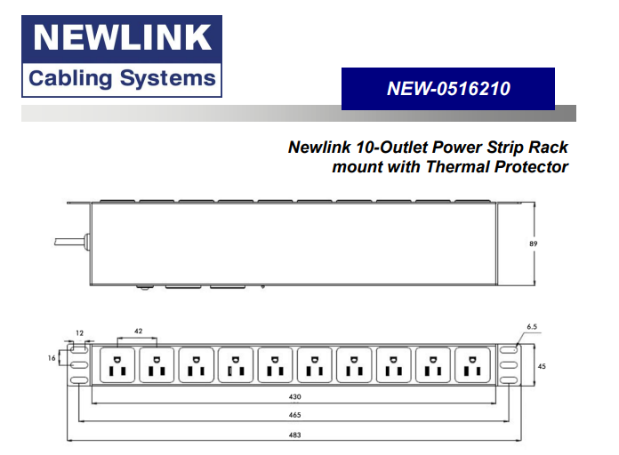 Newlink 10-Outlet Power Strip Rack Mount with Thermal Protector (NEW-0516210)