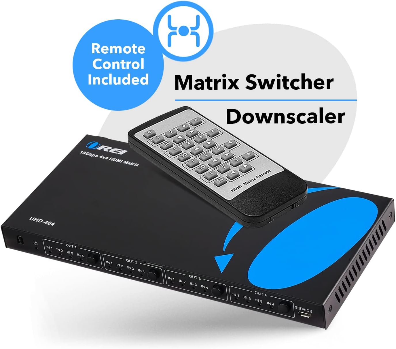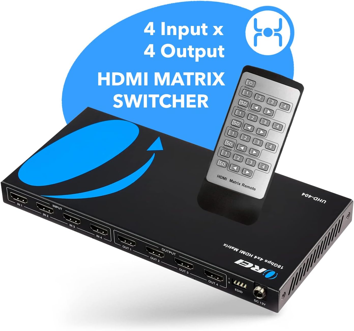 OREI HDMI Switch/Splitter 4x4 4K Matrix (4 Input, 4 Output) with Remote Control
