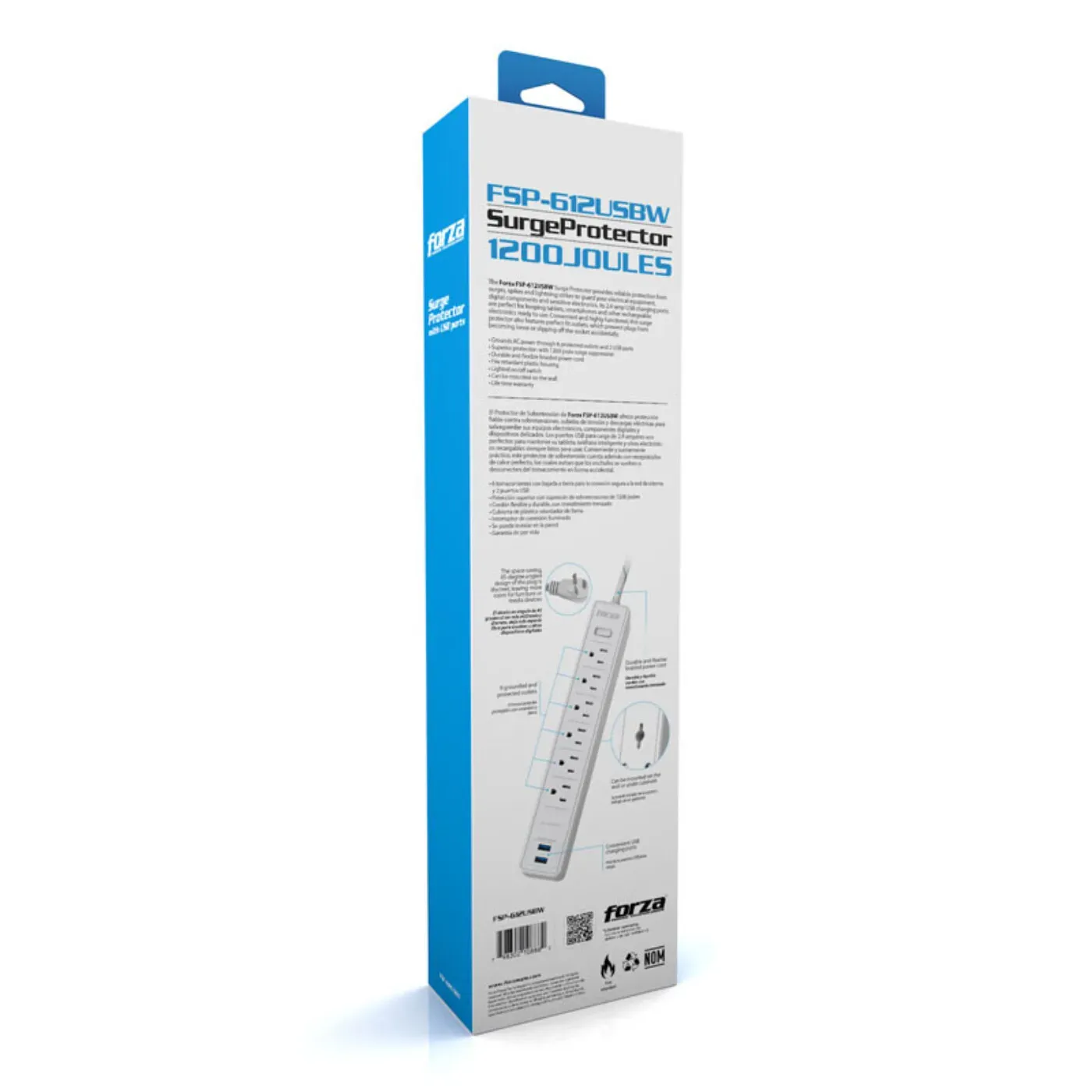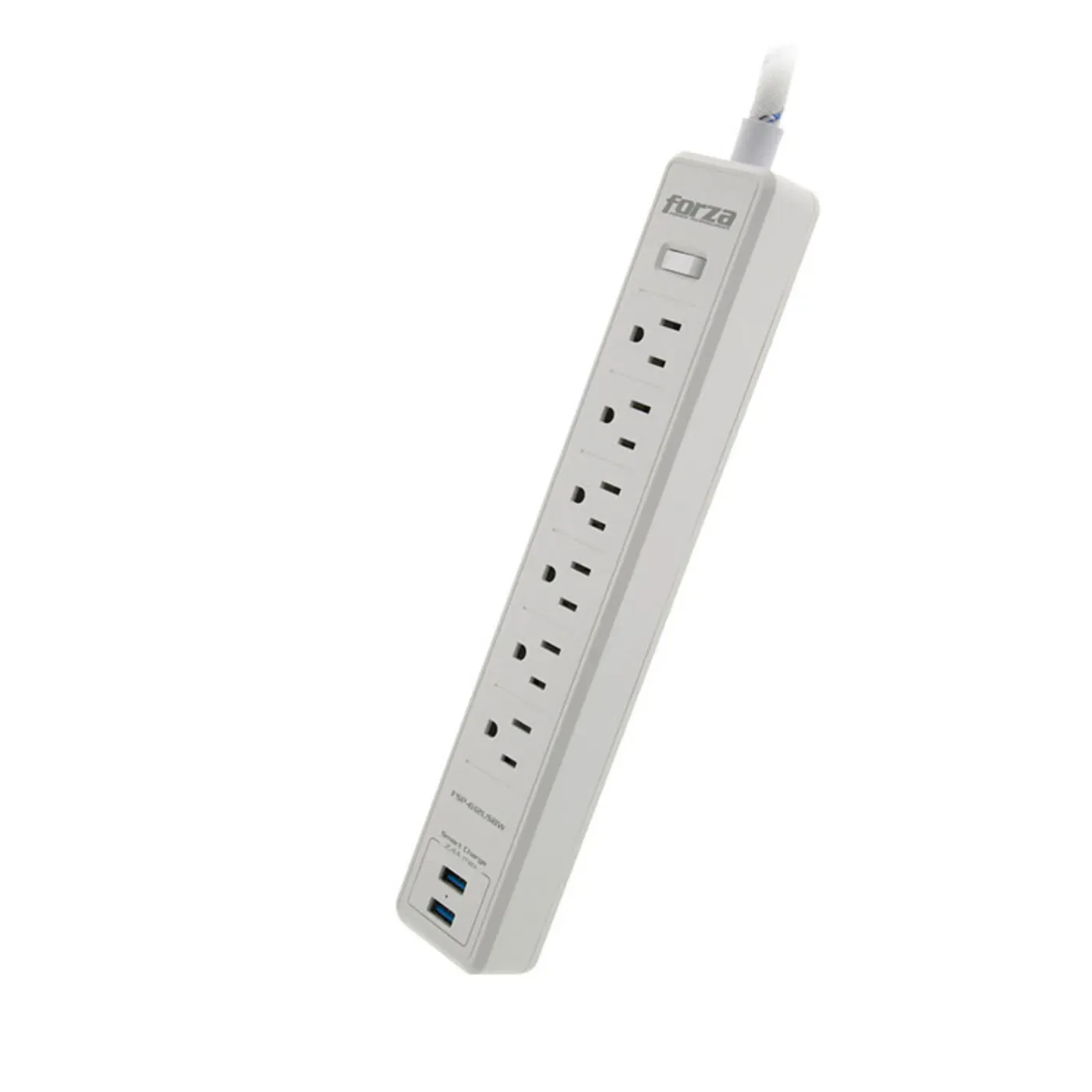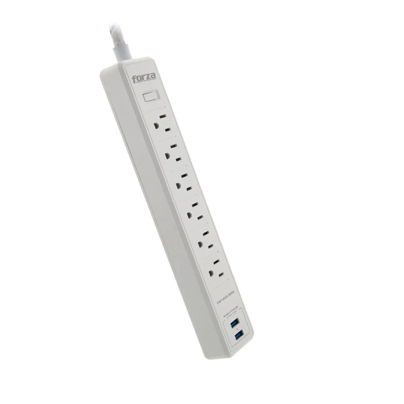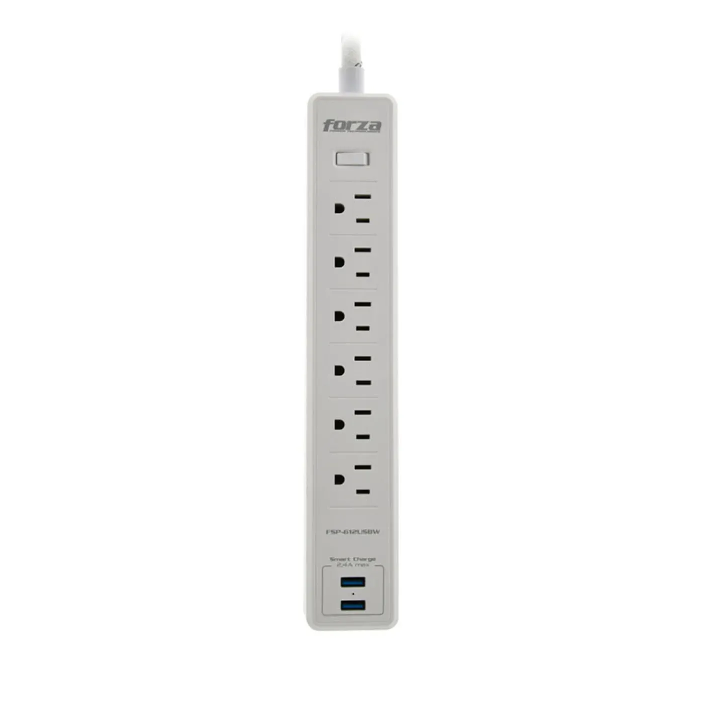 Forza Grounded Power Strip with Surge Protector - 6 Outlets + 2 USB Ports (FSP-612USBW)