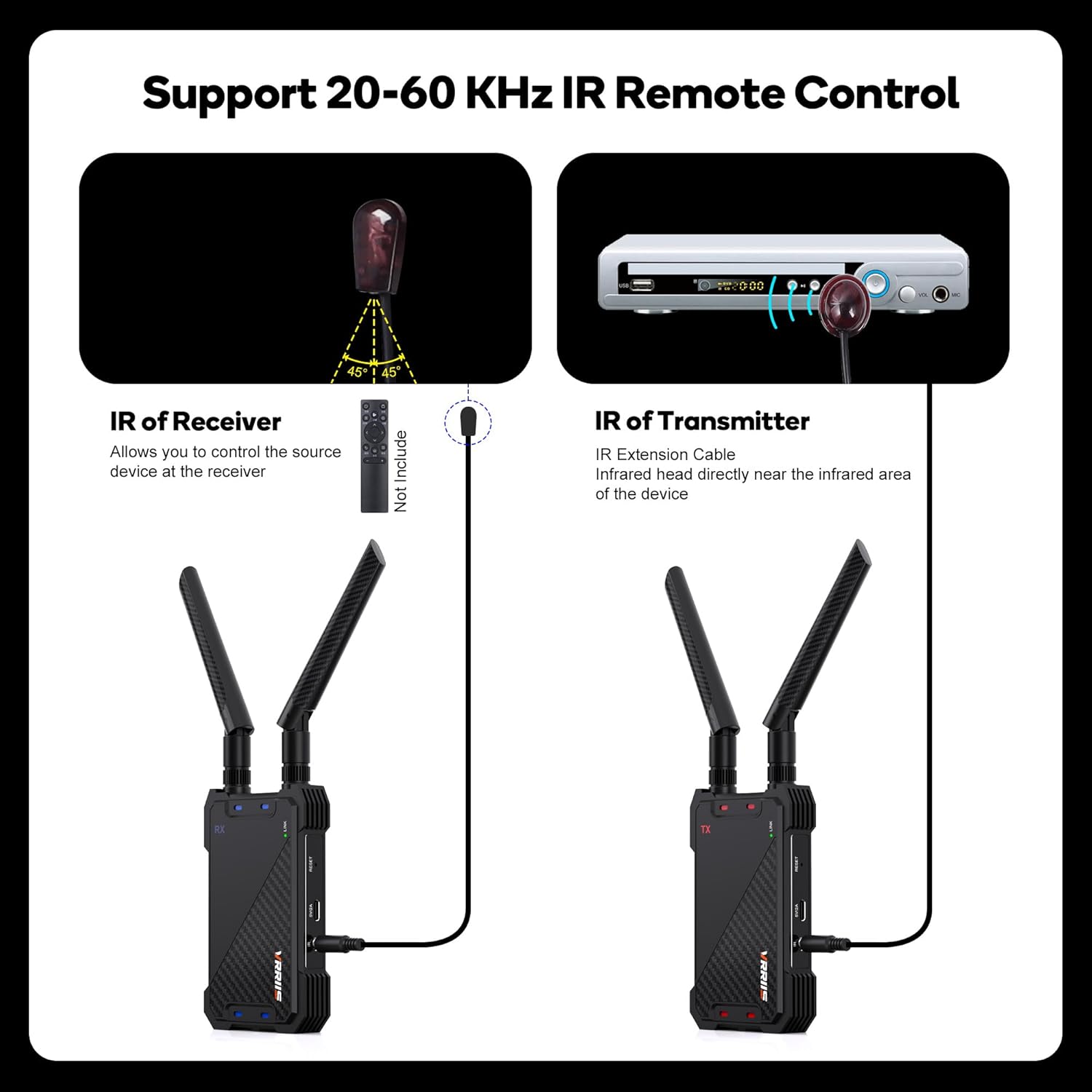 included IR cable to control the HDMI source device from an auxiliary