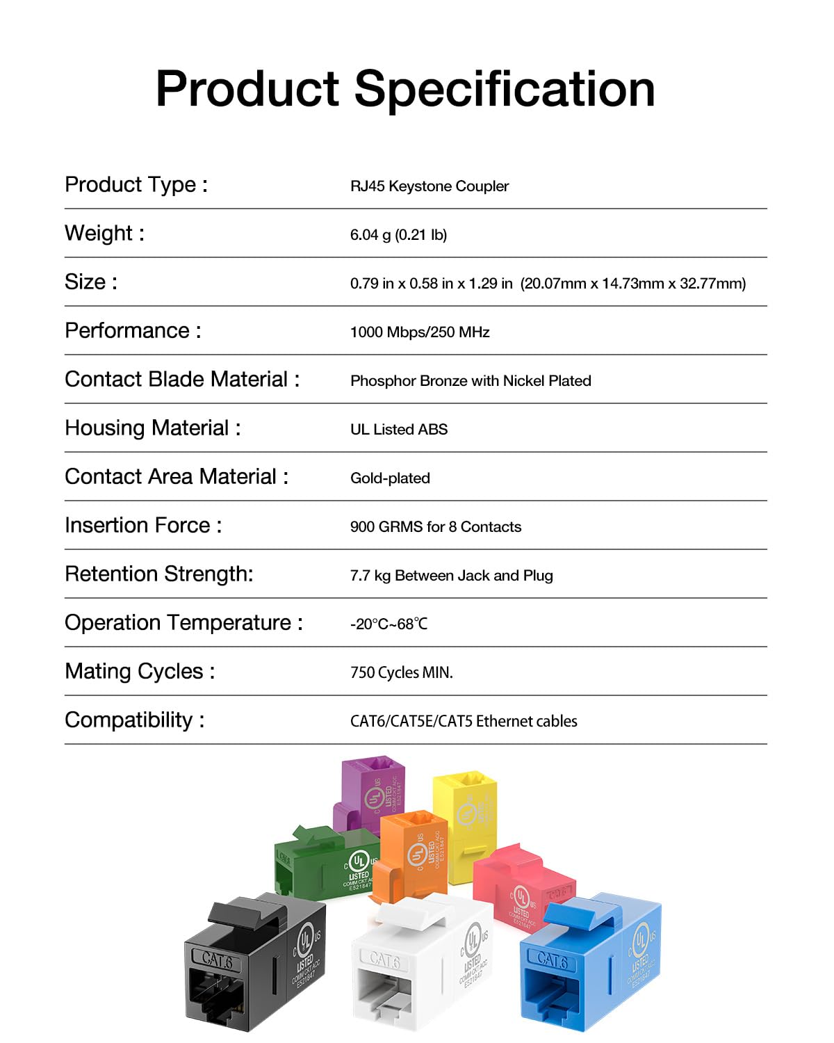 RJ45 Keystone Jack Female to Female Coupler for UTP Cat6 - 1x