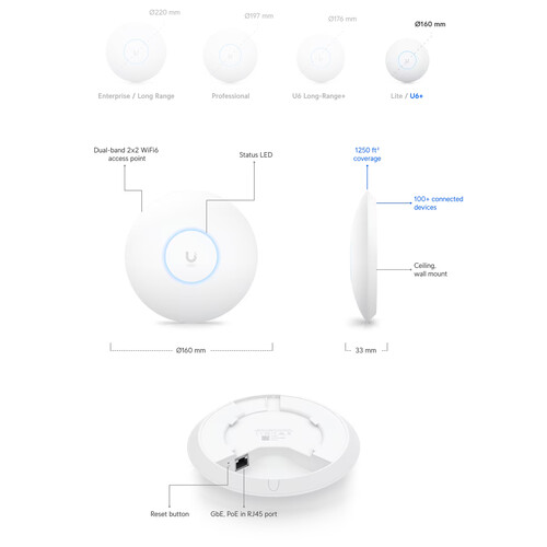 the UniFi U6+ Dual-Band Wi-Fi 6 Access Point from Ubiquiti
