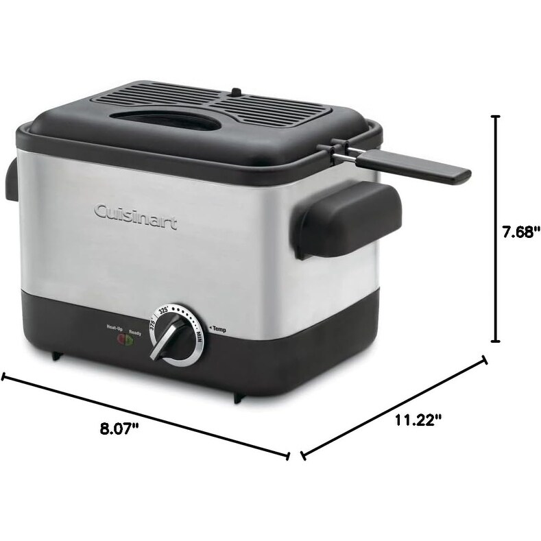 Meet the Cuisinart Compact Deep Fryer (1.1 QT) — a space-saving fryer that delivers restaurant-quality results right in your kitchen. Designed to use just 1.1 liters of oil, it’s ideal for quick snacks or small meals, frying up to ¾ pound at a time. The adjustable thermostat reaches up to 375 °F for precise frying, while the nonstick die-cast bowl with built-in heating element ensures even, efficient heat. A removable charcoal filter helps reduce odor, and the brushed stainless-steel housing is both durable and stylish. Practical, powerful, and compact — this deep fryer makes indulging in crispy comfort foods easier and more accessible.