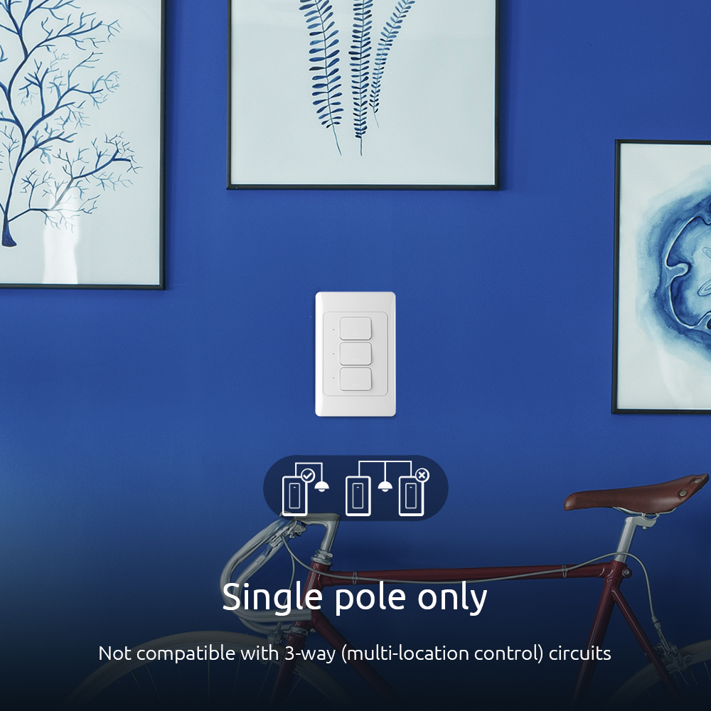 Upgrade your existing switch to this Smart 3-circuit switch and remotely take control of fans or lamps inside your home