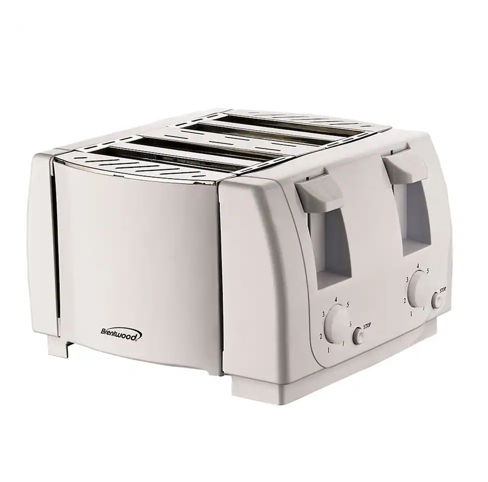 Use the powerful 1300 watt Brentwood TS-265 Cool Touch 4 Slice Toaster to save time in the morning when preparing breakfast for the family. Choose level of toast with 7 setting, light to dark dials. Auto centering guides insure even toasting. Individually cancel each toasting cycle using the cancel buttons. Right and left side crumb trays are located on the bottom of the toaster. Clean white toaster with stainless steel accents looks great on any kitchen counter.