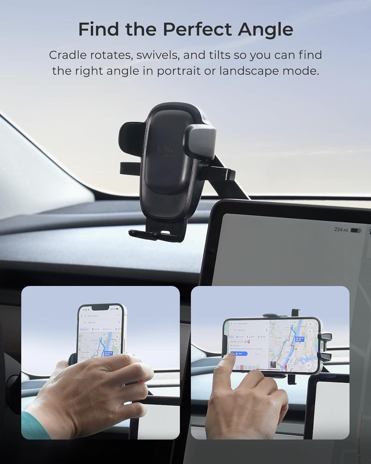 - Easy One Touch Mechanism: Mount and retrieve your phone in seconds thanks to the patented Easy One Touch mechanism. Simply squeeze the release bars to open the locking side arms and press your cell phone against the Easy One Touch trigger button. The arms will close automatically to secure your device in place.