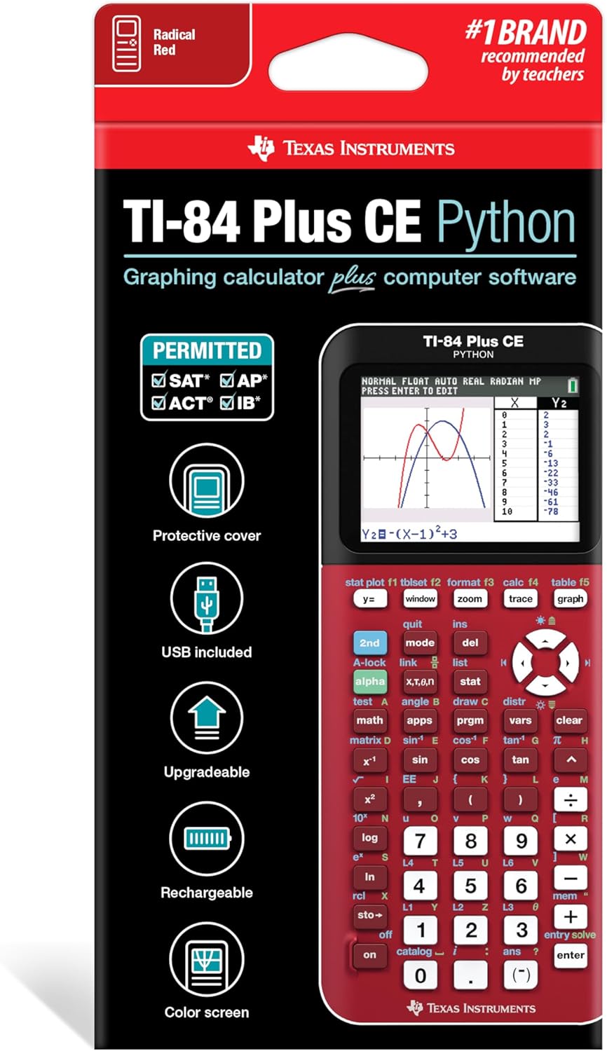 Texas Instruments TI-84 Plus CE Color Graphing Calculator – Red