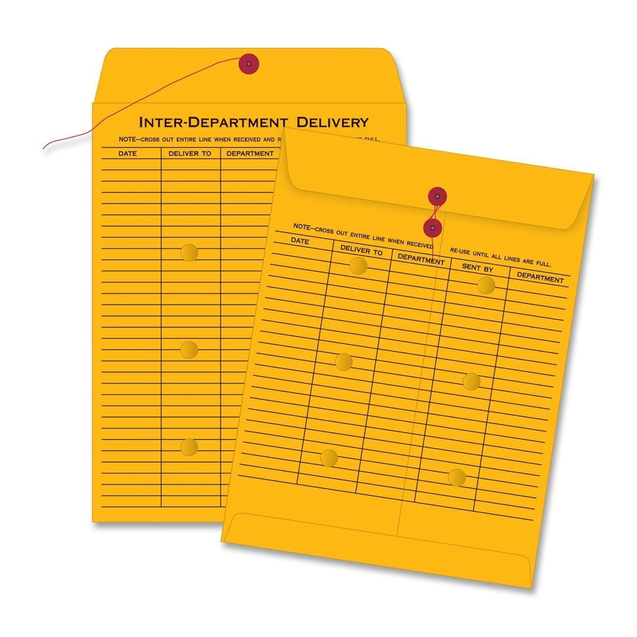Durable Kraft stock is ideal for everyday interoffice use. String and button closure can be used again and again. Pre-printed routing table features 31 rows. Envelope Size: 10 x 13 Envelope/Mailer Type: Interoffice Closure: String and Button Trade Size: 97.