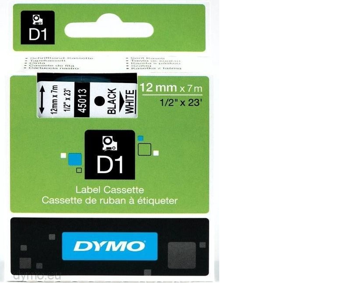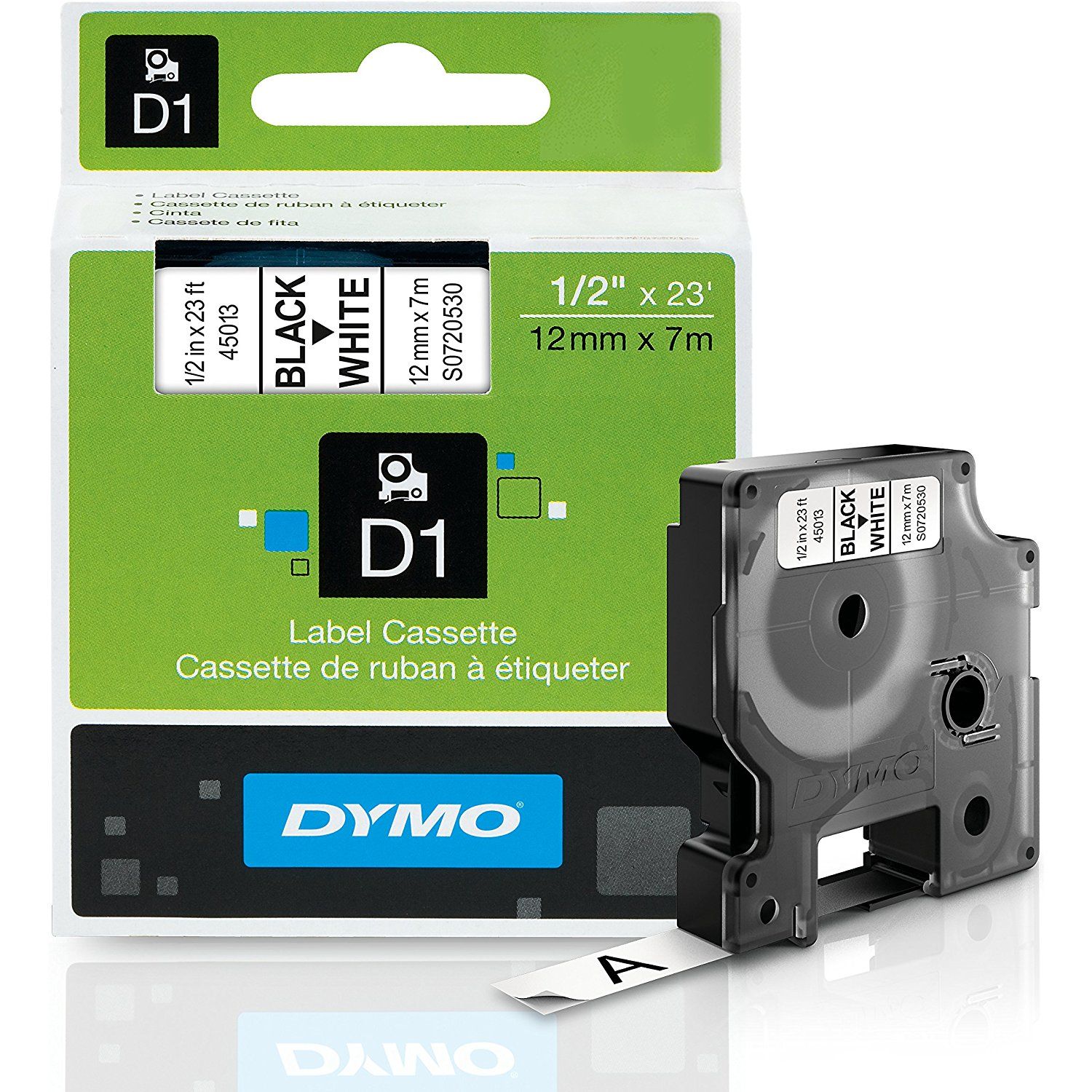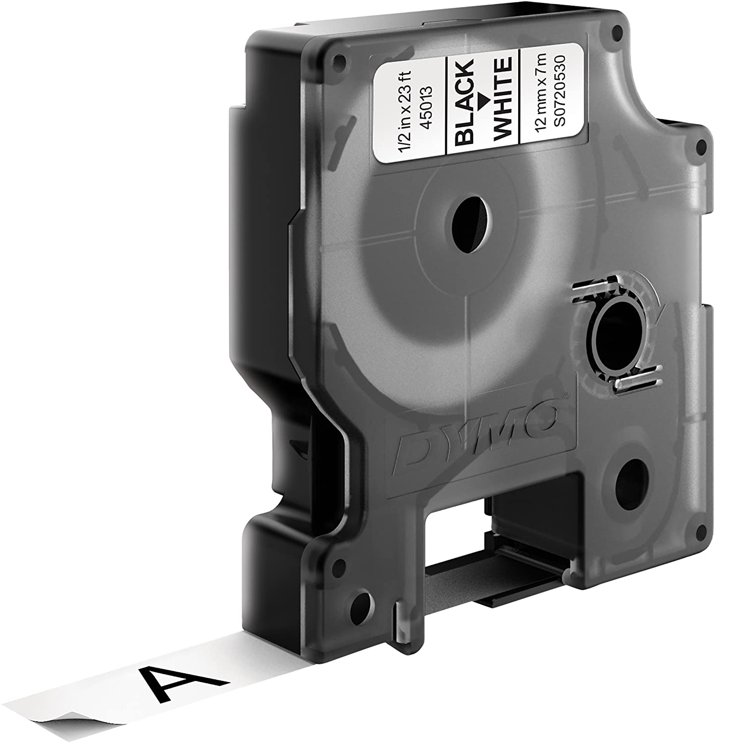 DYMO 45013 Standard D1 Labeling Tape for LabelManager Label Makers, Black Print On White Tape, 1/2'' W x 23' L