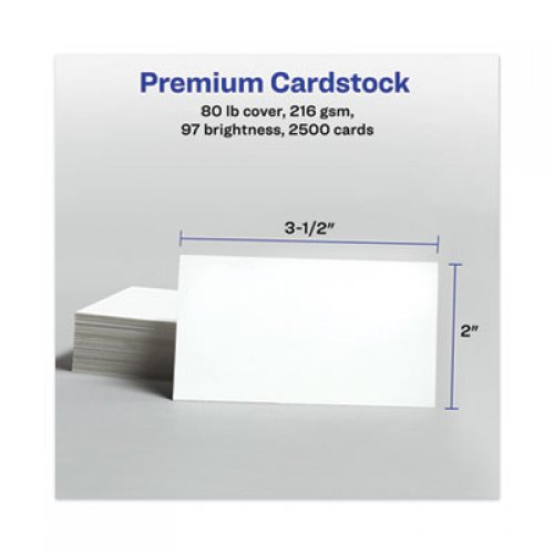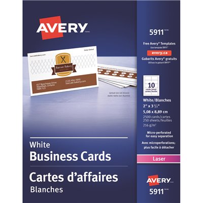 Avery (5911) Printable Microperforated Business Cards with Sure Feed Technology, Laser, 2 x 3.5, White, Uncoated, 2500/Box