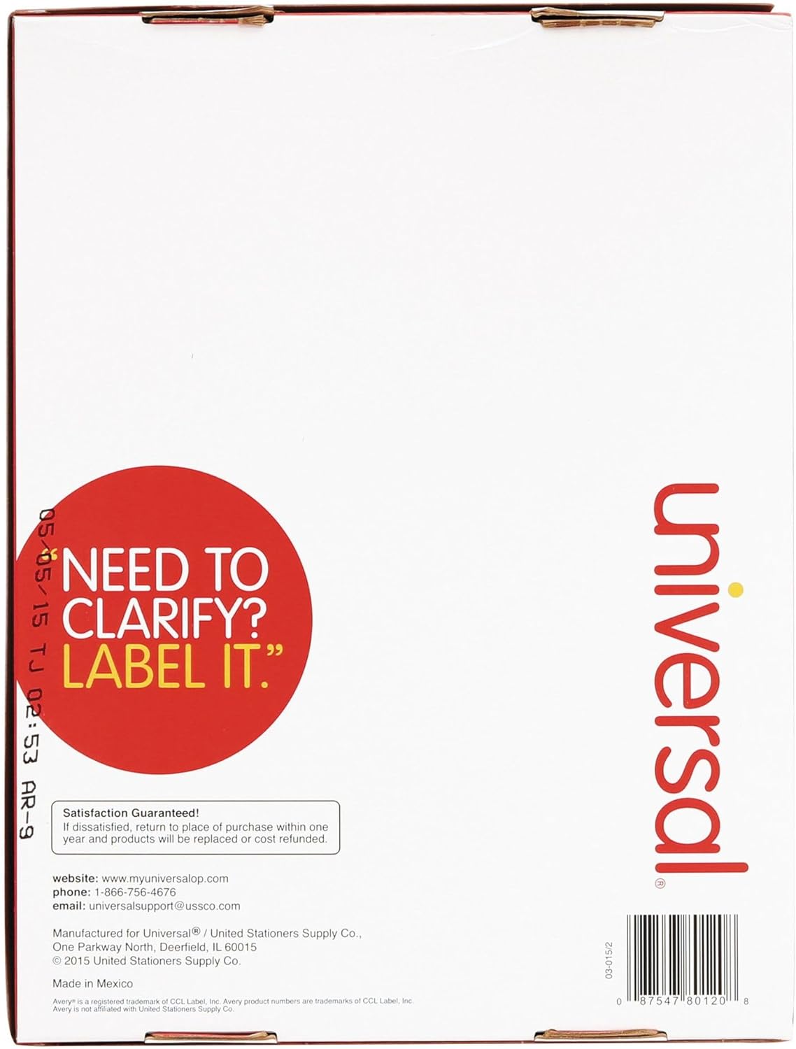 Universal White Labels for Ink/Laserjet Printers - 1 x 2.63" - UNV80120 (30 Labels Sheet, 250 Sheets/Pack)