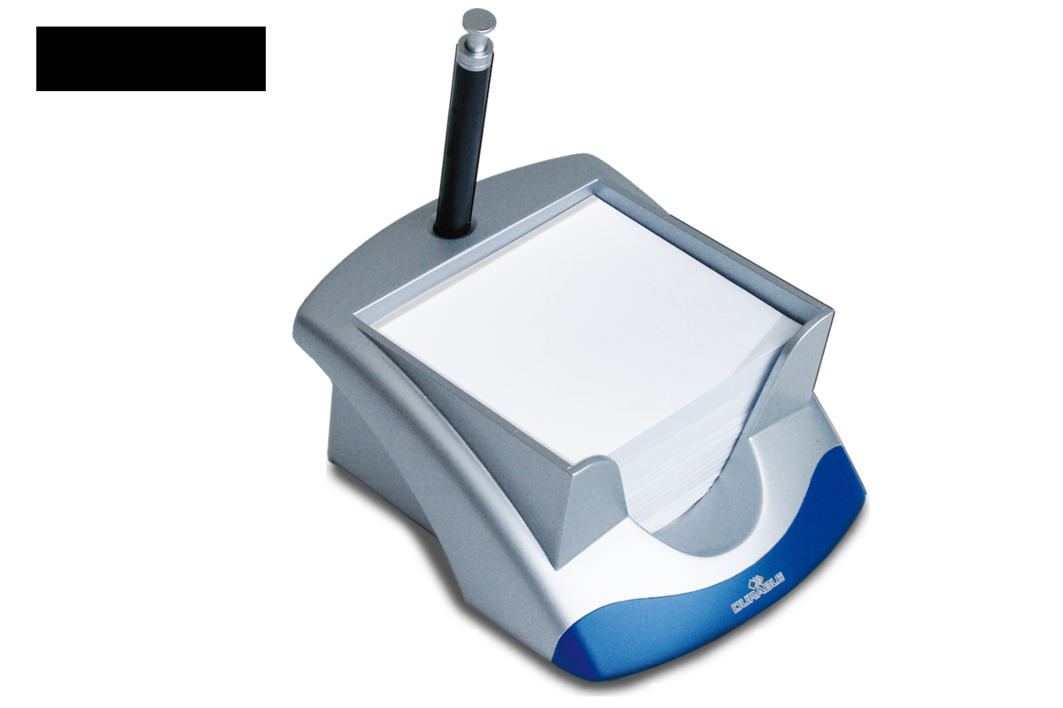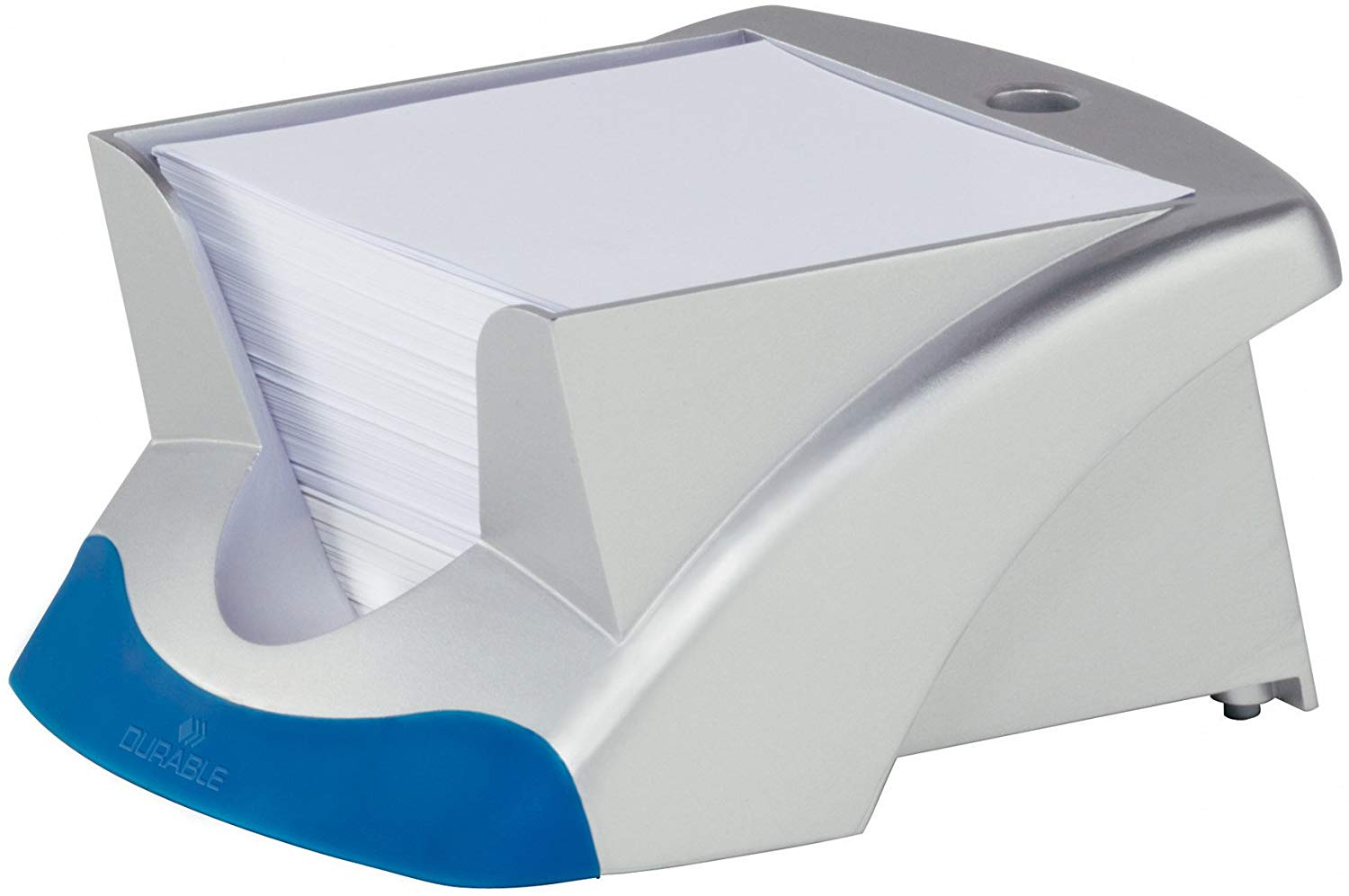 DURABLE NOTE BOX VEGAS, white/ blue paper box with 500 white note sheet blank (90 x 90 mm), with pen holder, with rubberized Stand pads for secure, non-slip, high quality plastic Dimensions: (W) 153 x (D) 70 x ( H) 116 mm