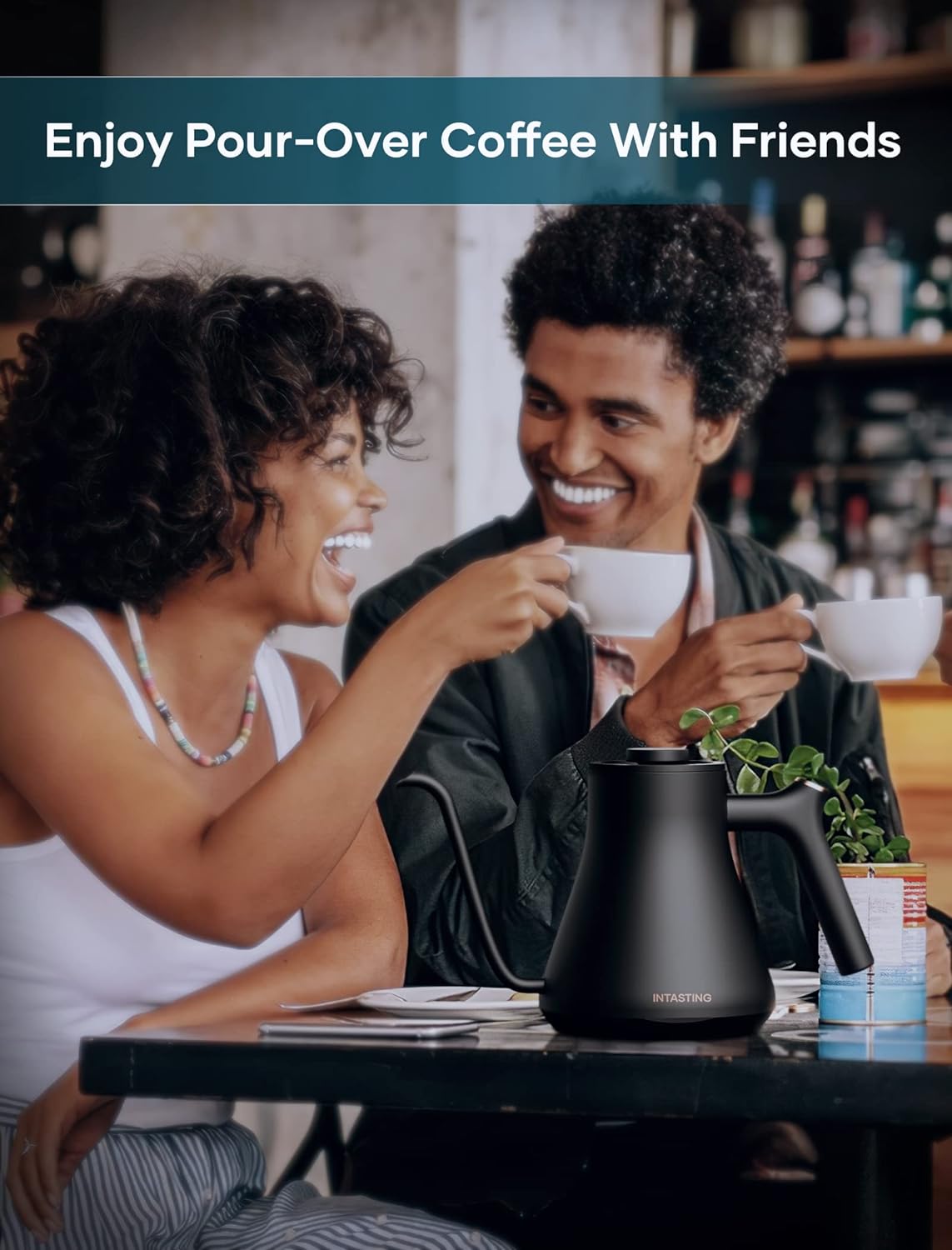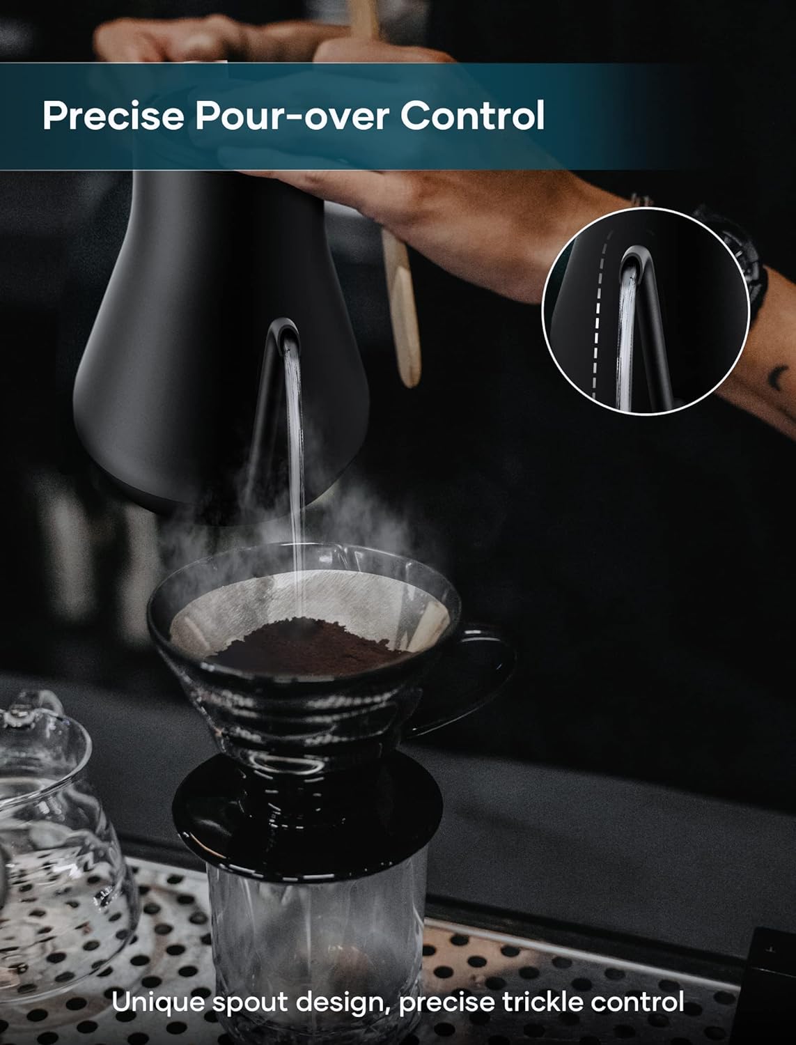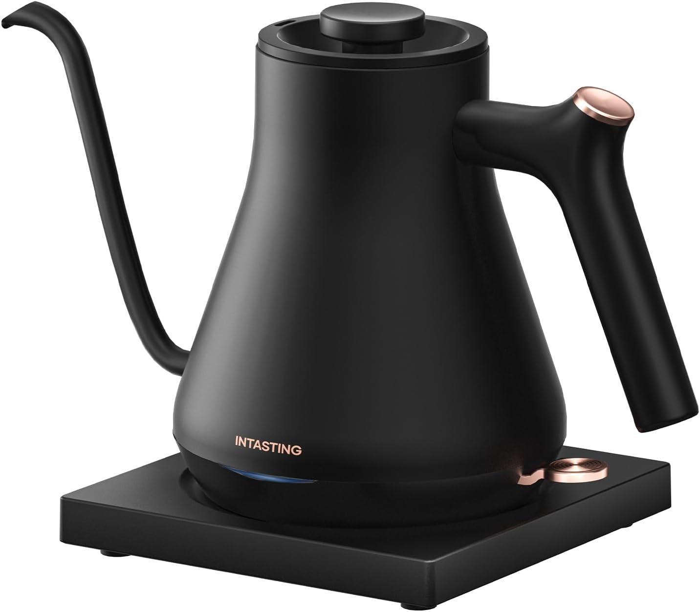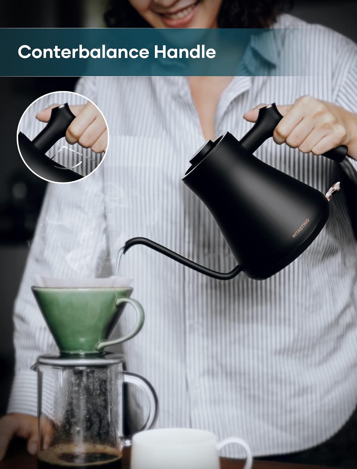 INSTASTING Electric Professional Gooseneck Kettle 0.65mm Ultra-Fine Sprout (0.9L/30oz) - Auto Shut-Off, Boil Dry Protection - Matte Black