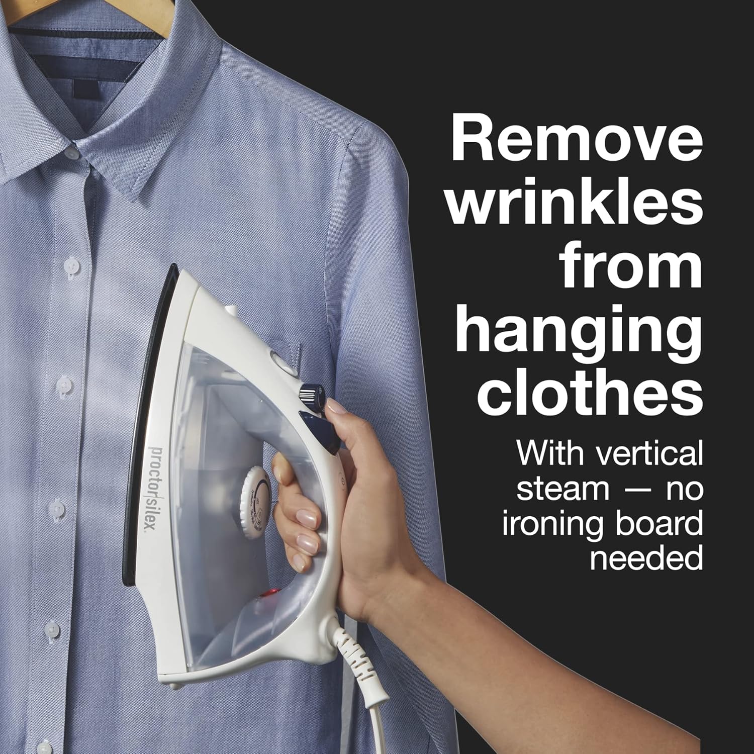 REMOVE WRINKLES FROM HANGING CLOTHES: This steam iron doubles as a garment