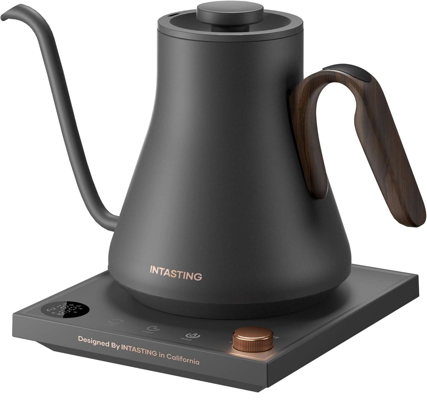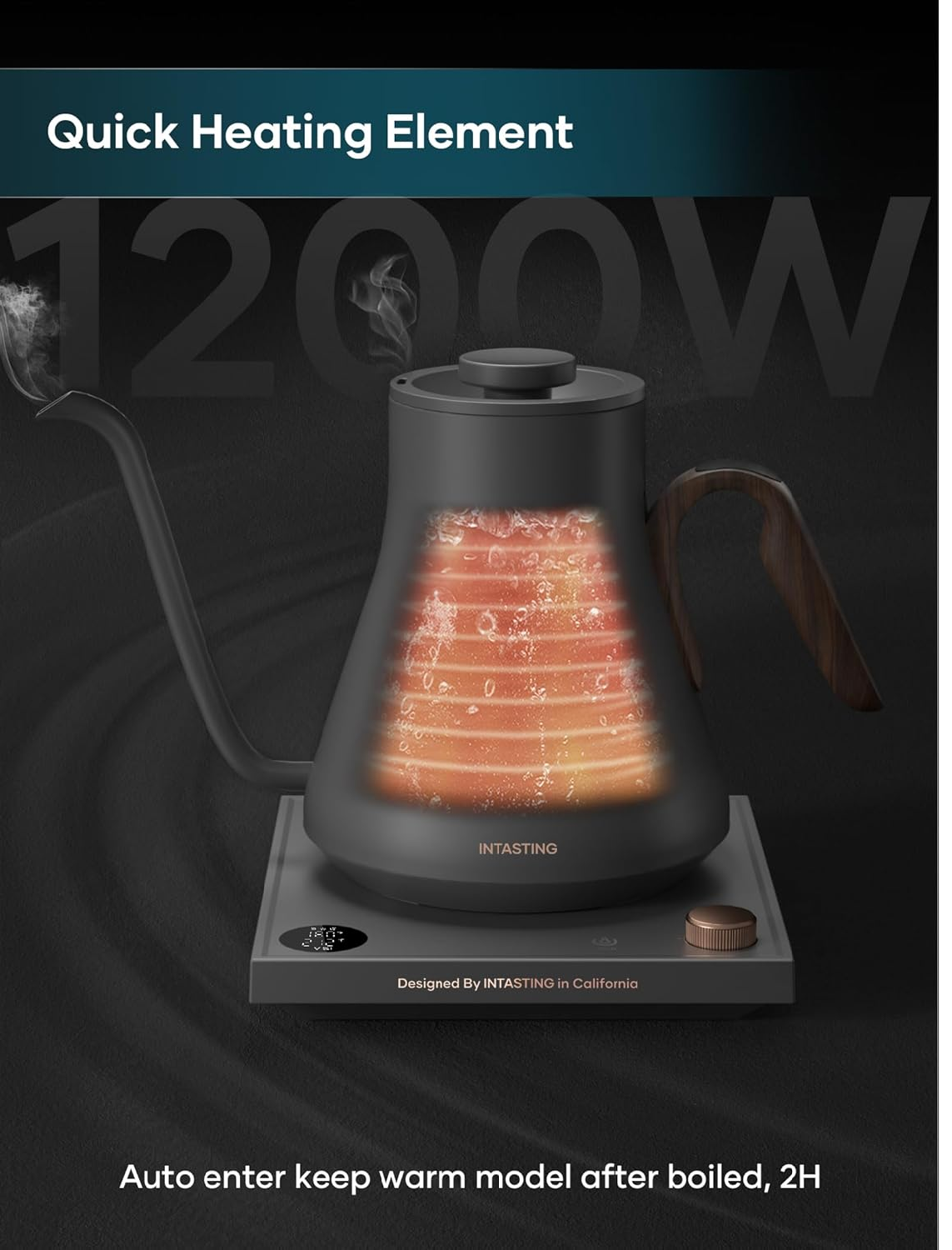 INSTASTING Electric Professional Gooseneck Kettle 0.65mm Ultra-Fine Sprout (0.9L/30oz) - Auto Shut-Off, Boil Dry Protection – Matte Dark Grey/ Dark Brown Handle