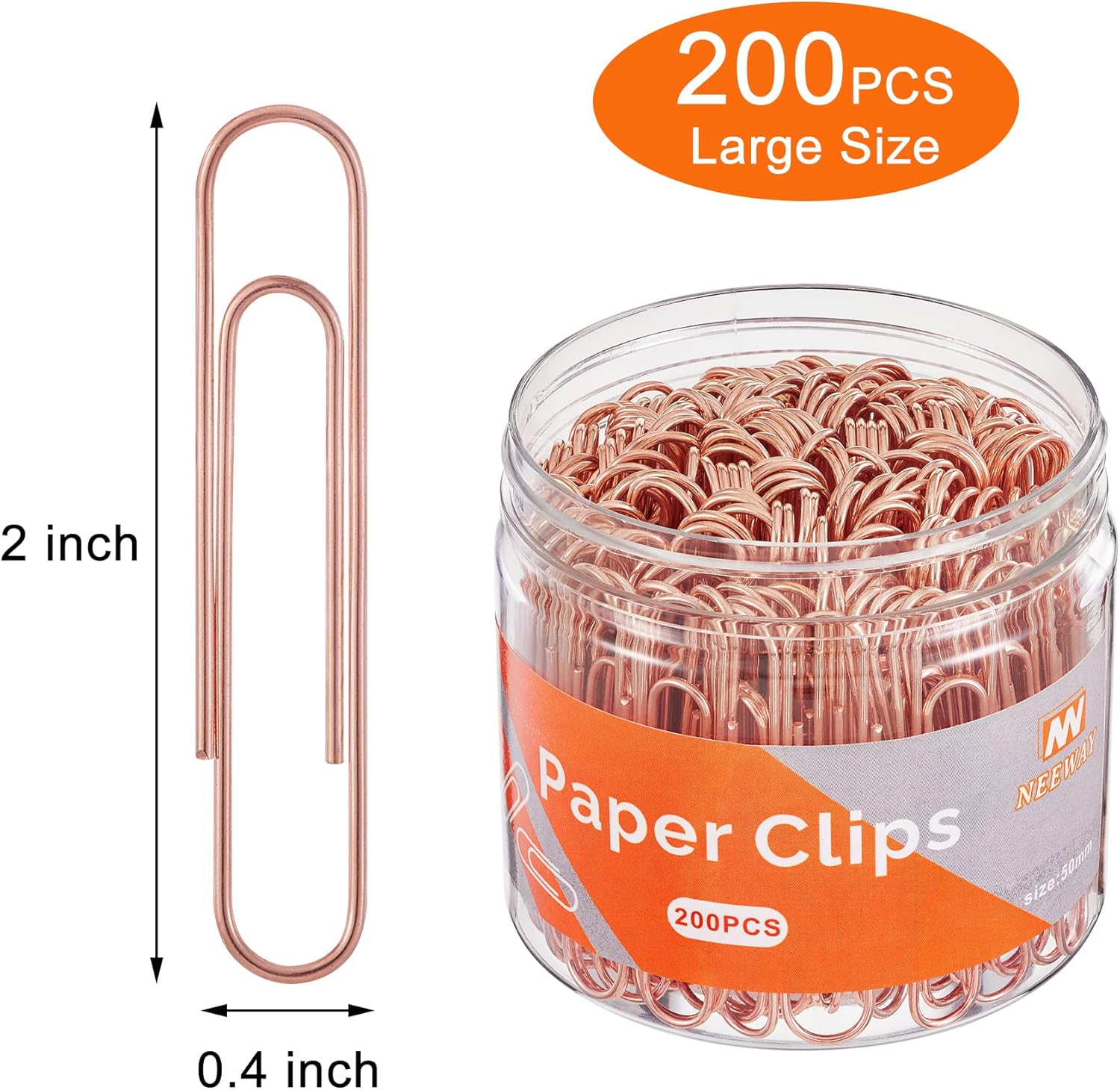 Neeway Rose Gold Paper Clips, 200 Count Large Size, 2 Inch Jumbo Paperclip