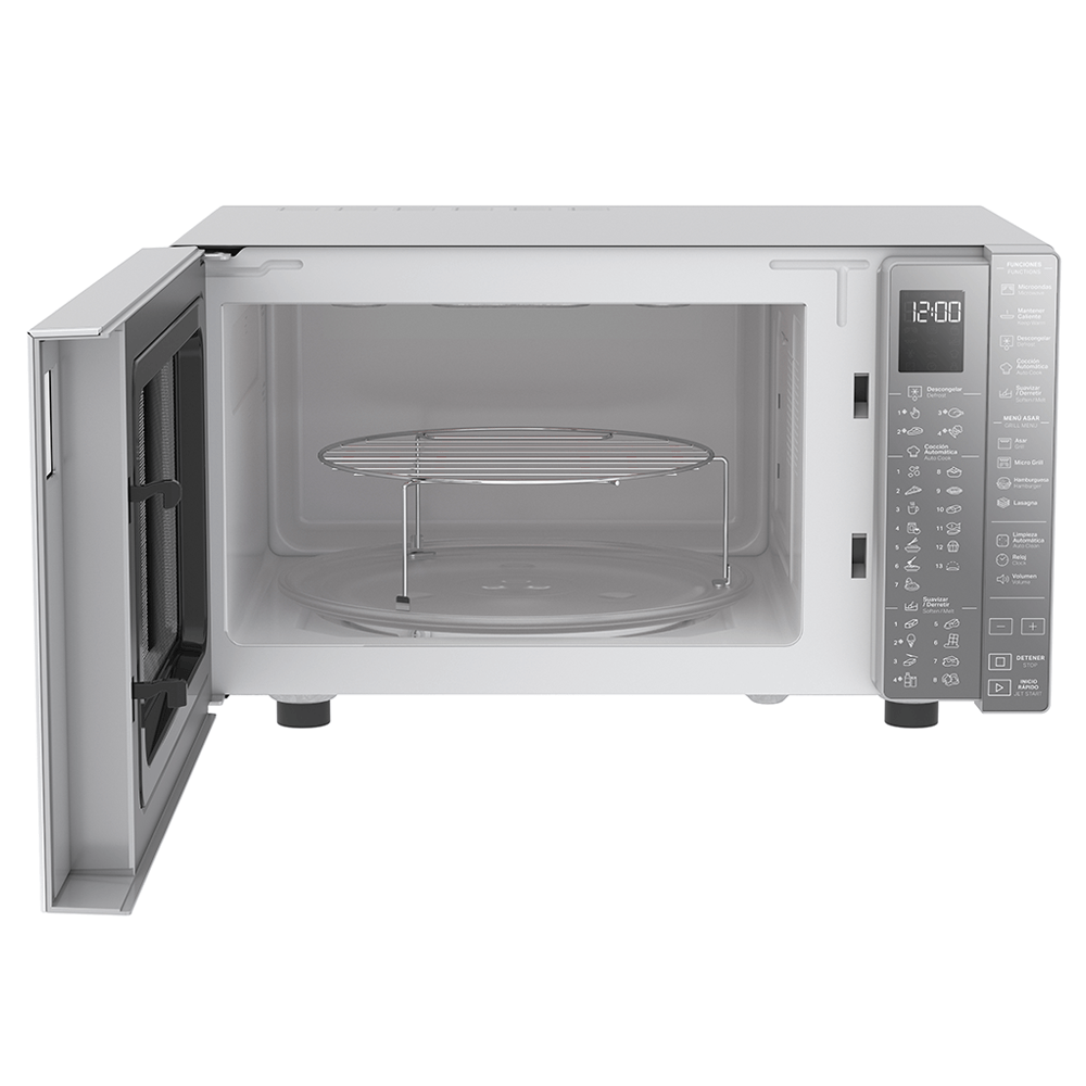 vegetables), and automatic cooking presets for popcorn, pizza, rice, and more.