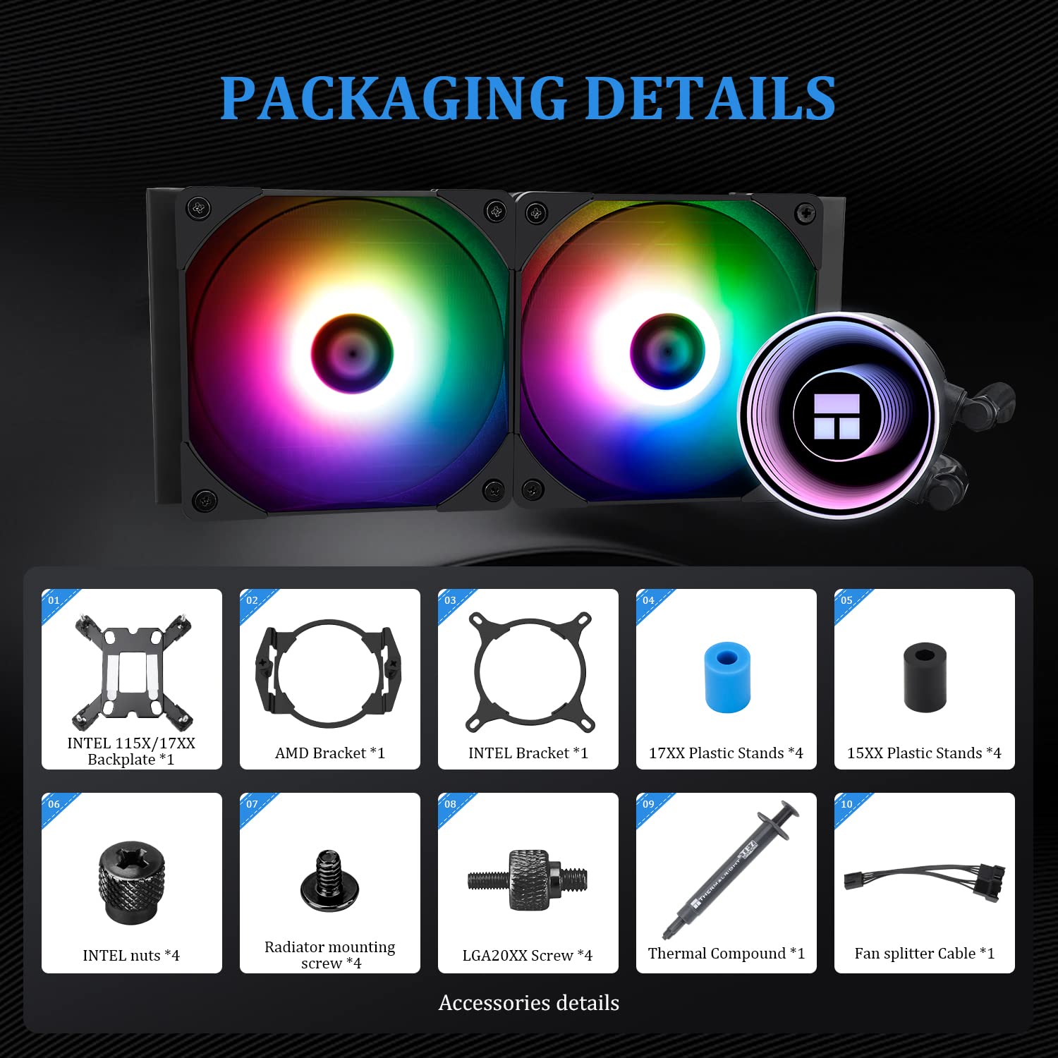 AM4/AM5/AM2/AM2+/AM3/AM3+/FM1/FM2/FM2+, the cpu water cooler with dual