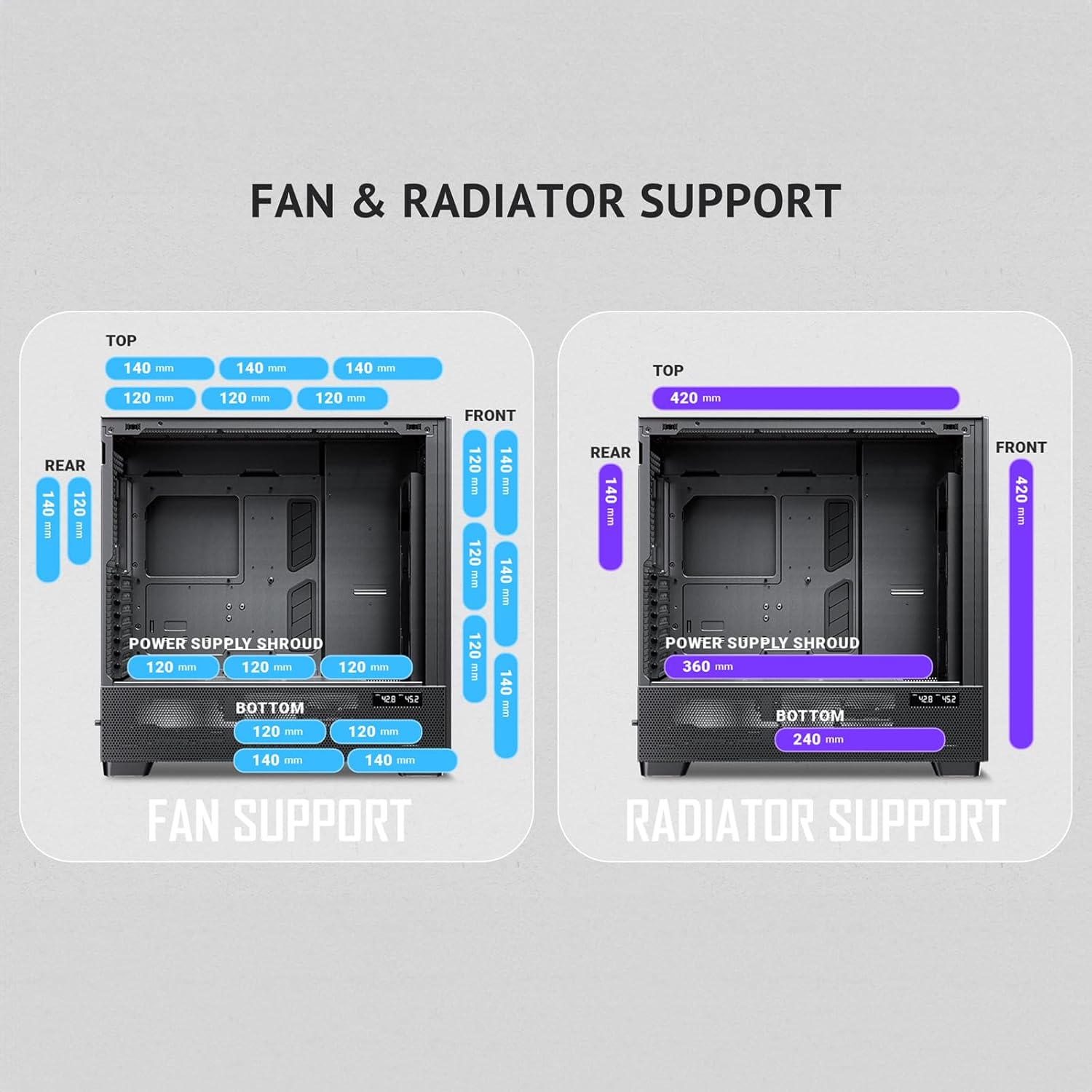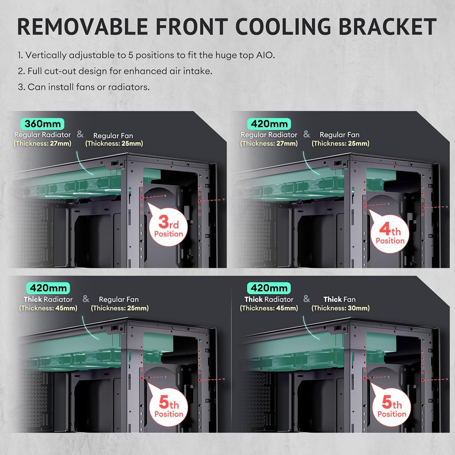 simultaneous installation of 420mm radiator + 360mm radiator.
