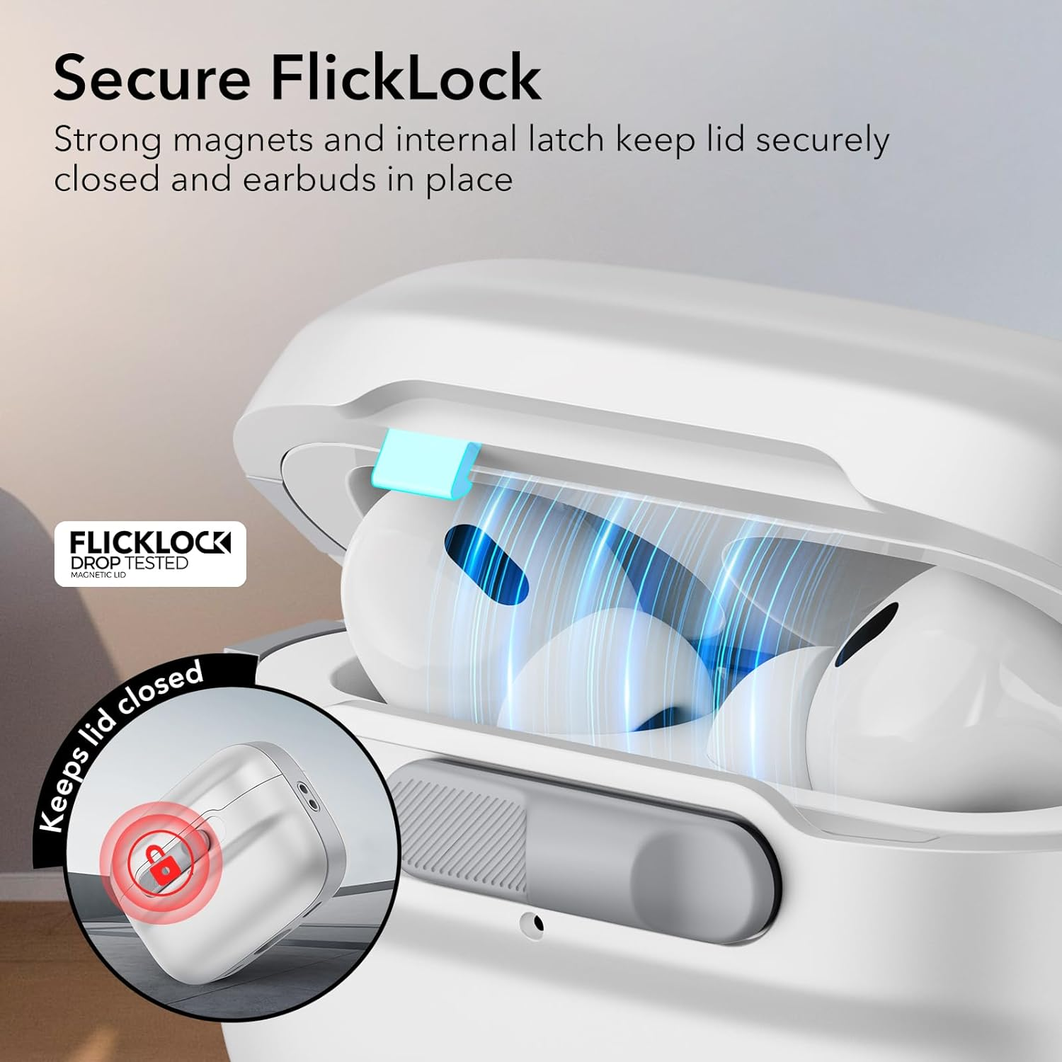 • Drop-Proof Lid Lock: strong magnets with 700 g of holding force in the top and bottom of the lid and an internal latch keep your AirPods locked safely inside so they won’t pop out if dropped