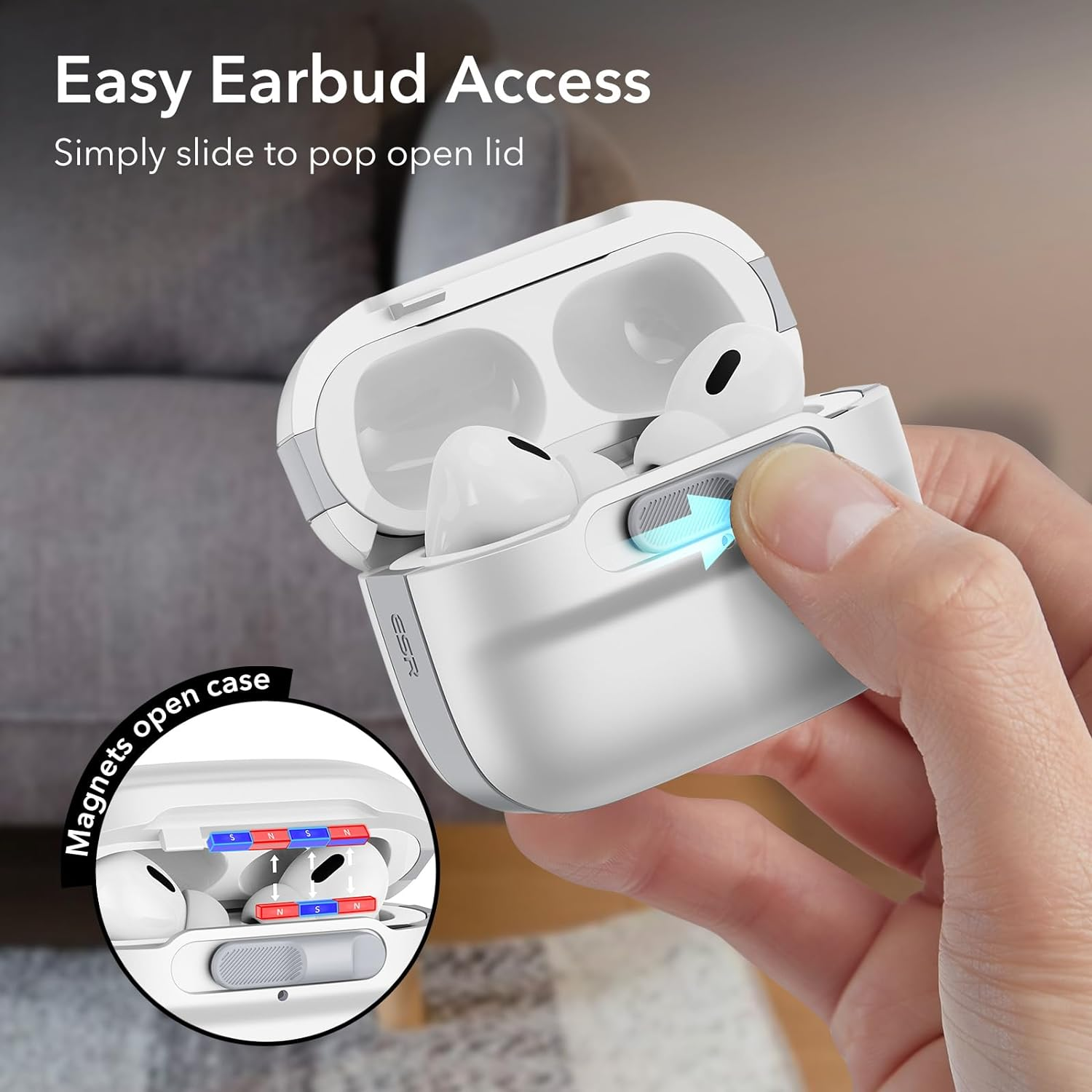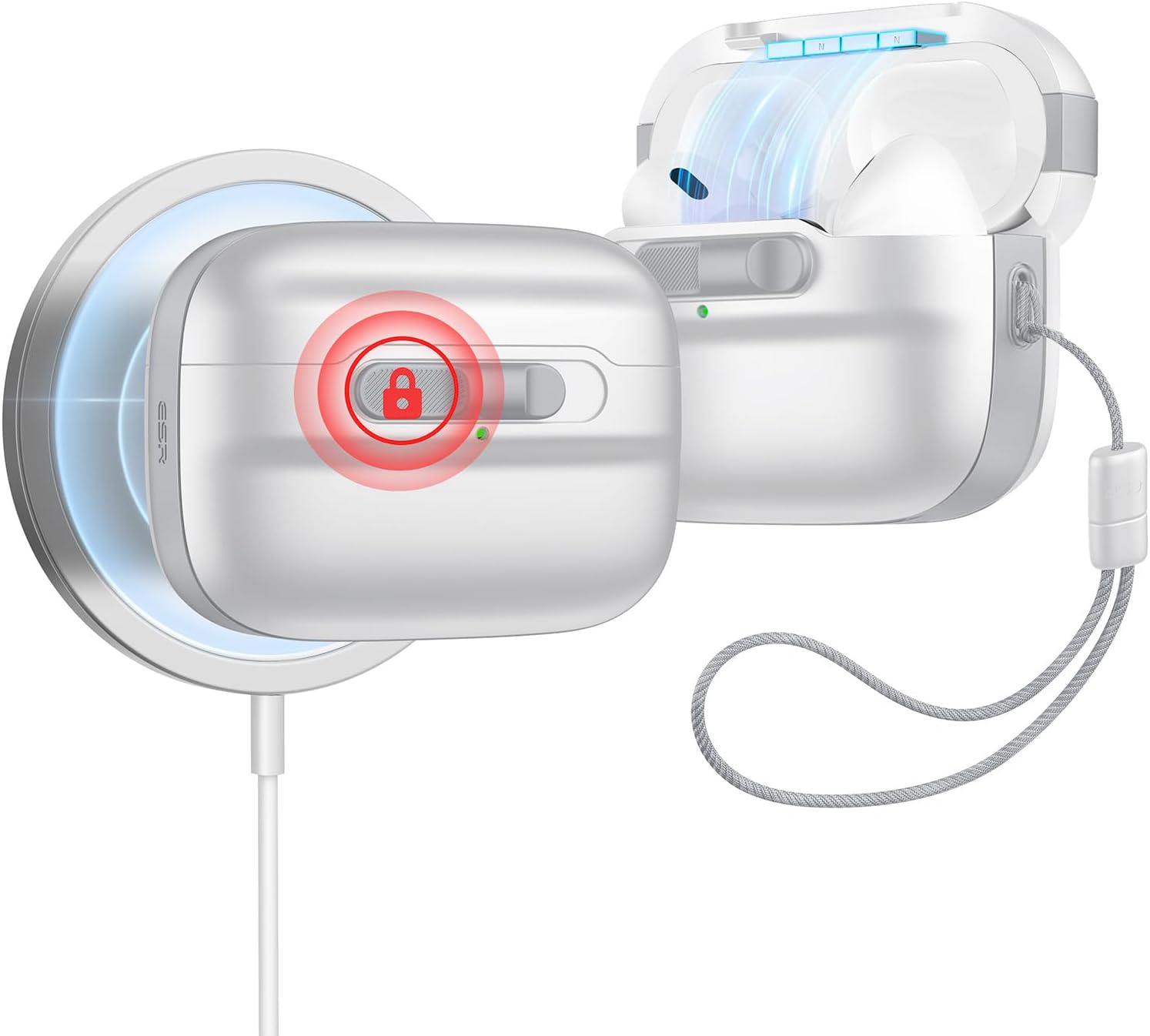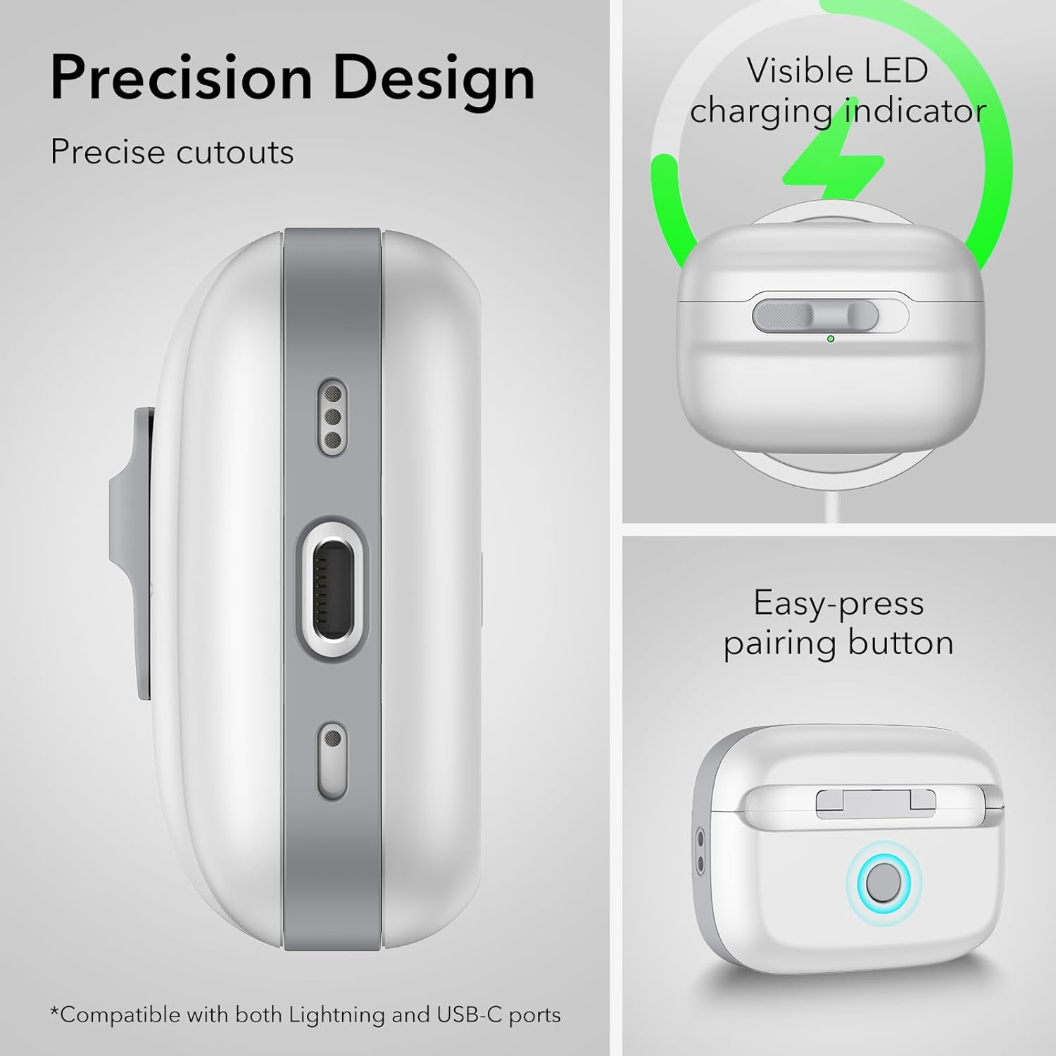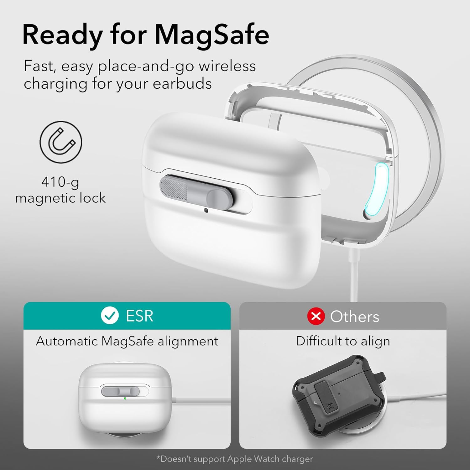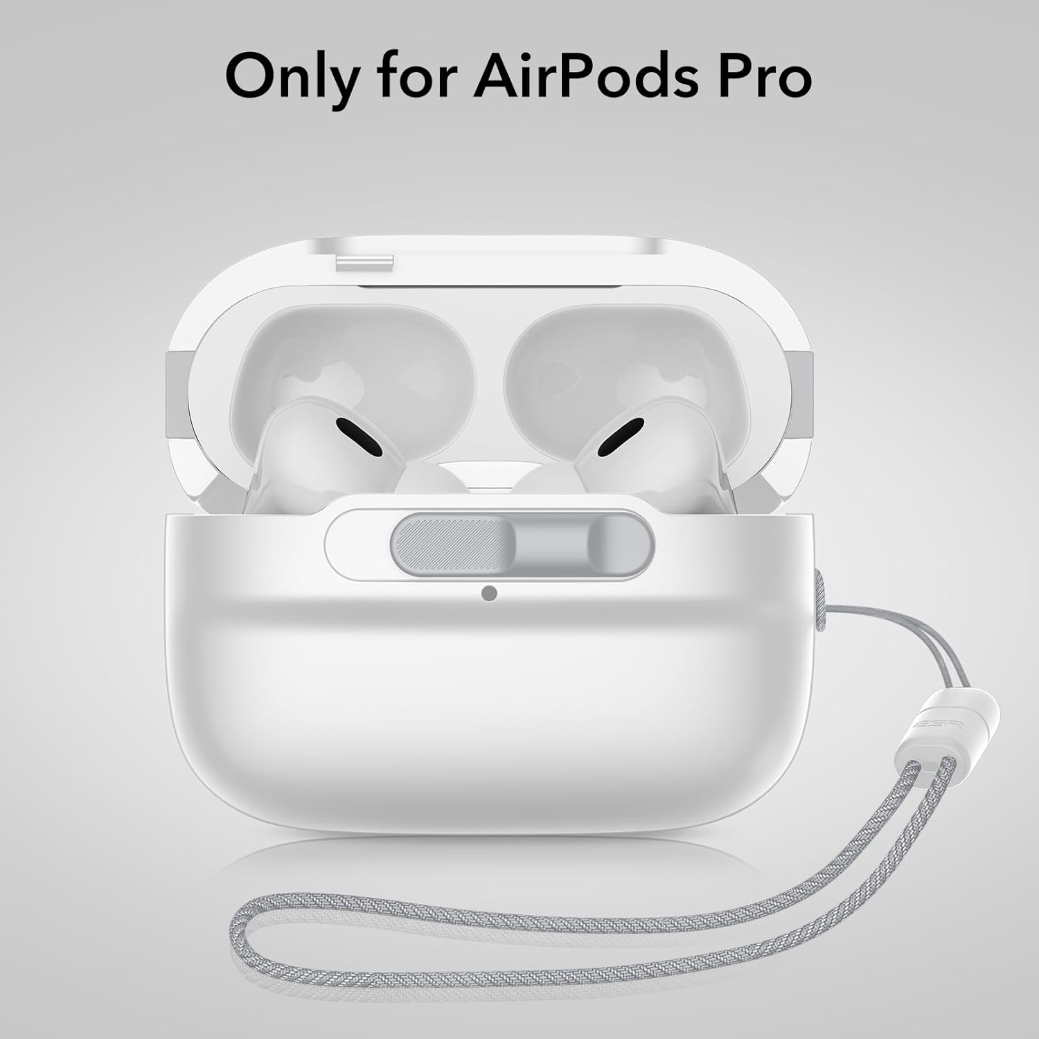 ESR for AirPods Pro Case (2023/2022/2019, 2nd/1st Gen), Compatible with Airpods Pro 2 (USB-C/Lightning Cable), MagSafe Ready, Magnetic Lid Lock, Full Drop Protection Cover with Lanyard, White