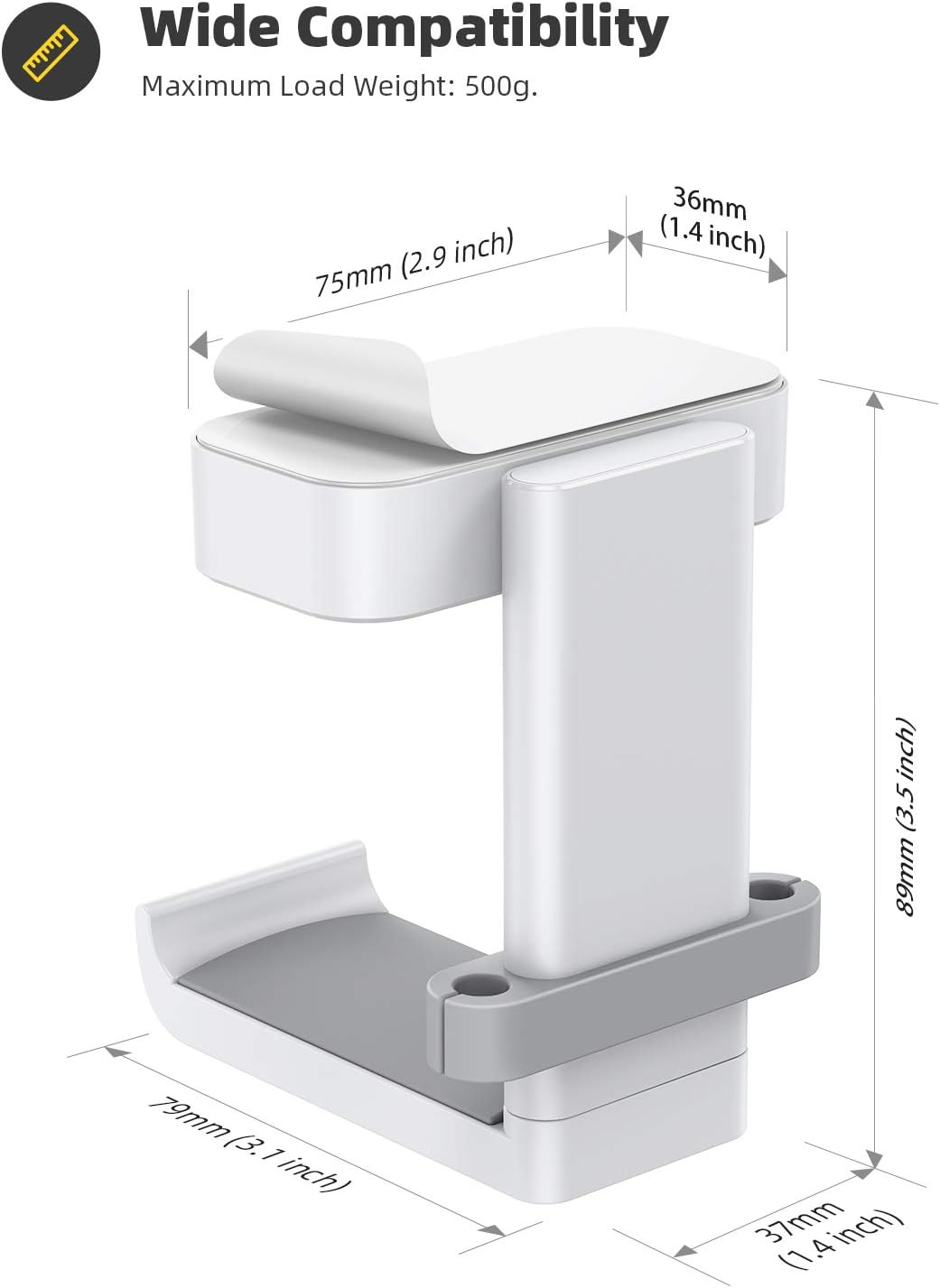 • Quick Install - This headphone holder with strong double-sided tape, can hang the headphone safely. Note: Please make sure the suface is smooth, dry and oilless, and hang on your headphone after 24 hours to ensure the hanger is firmly stuck, Maximum headphone load: 500g.