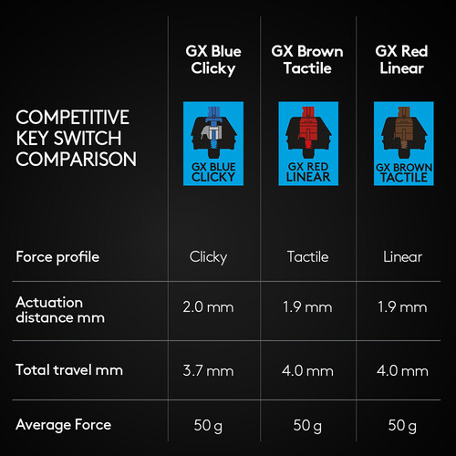 on-the-go. Built with Logitech GX Blue switches, this keyboard offers a tactile