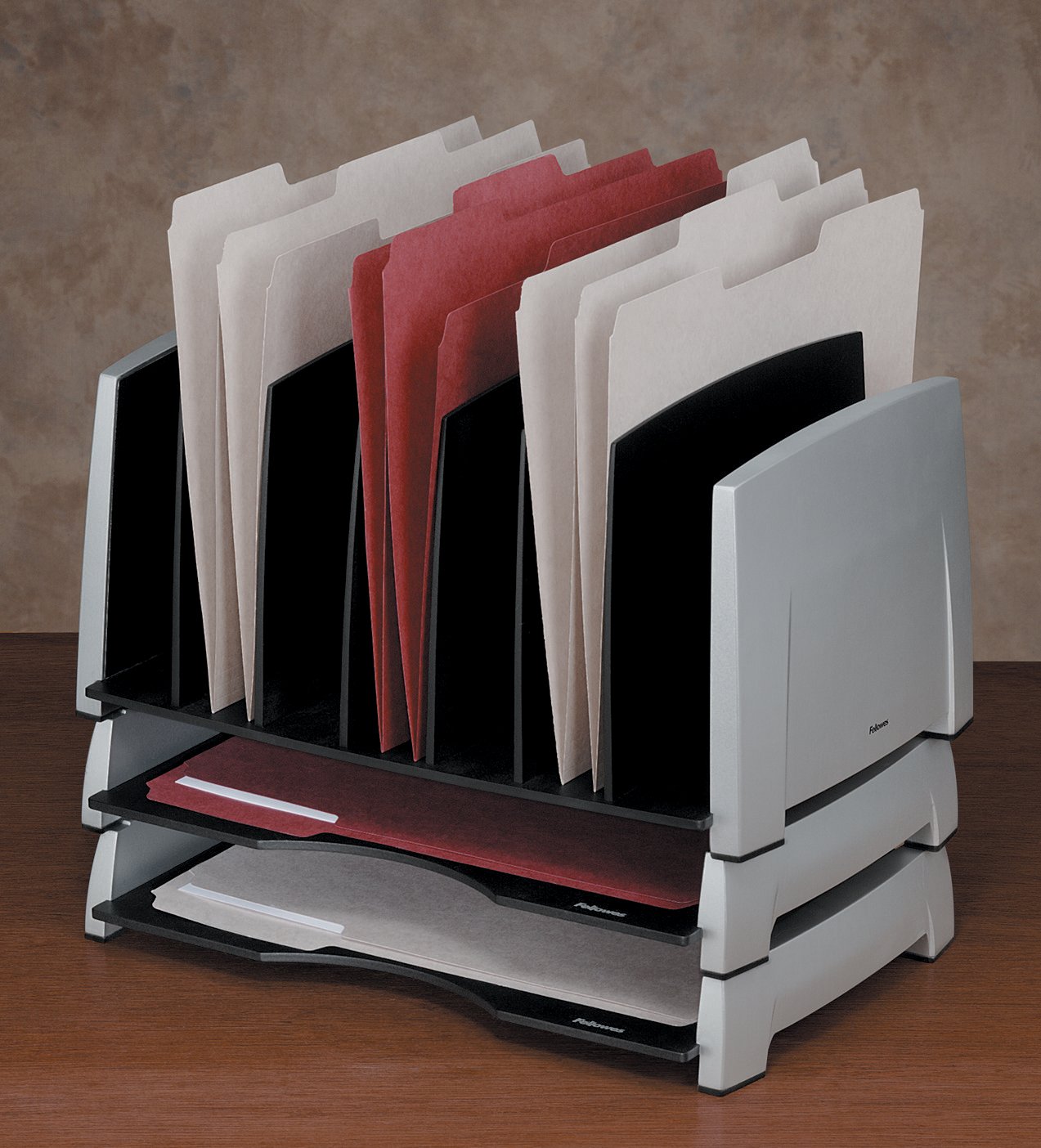 - Fellowes Side Load Letter Desk Tray, Plastic, Black/Silver