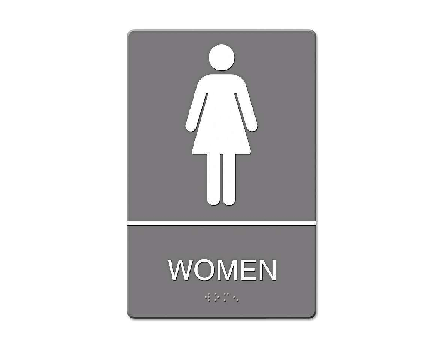Easily recognizable white graphic helps identify the location of a Women’s restroom. Raised tactile graphics with grade 2 braille. Meets Americans with Disabilities Act (ADA) requirements.