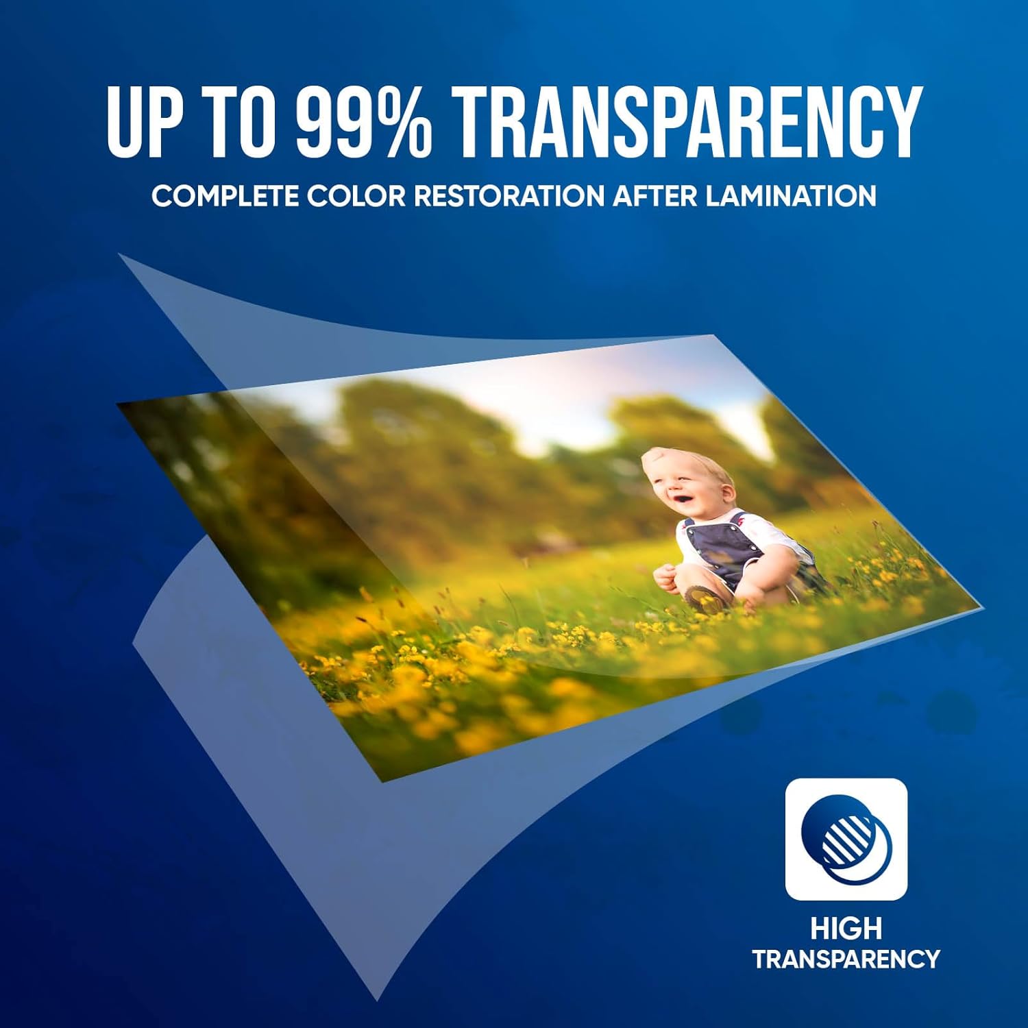 • UP TO 99% TRANSPARENCY - Experience unparalleled clarity with up to 99% transparency after lamination. Rolett laminating pouches sheets guarantee complete color restoration, preserving the vibrancy and sharpness of your photos and documents. Choose our laminating sheets for a perfect blend of protection and visual appeal.