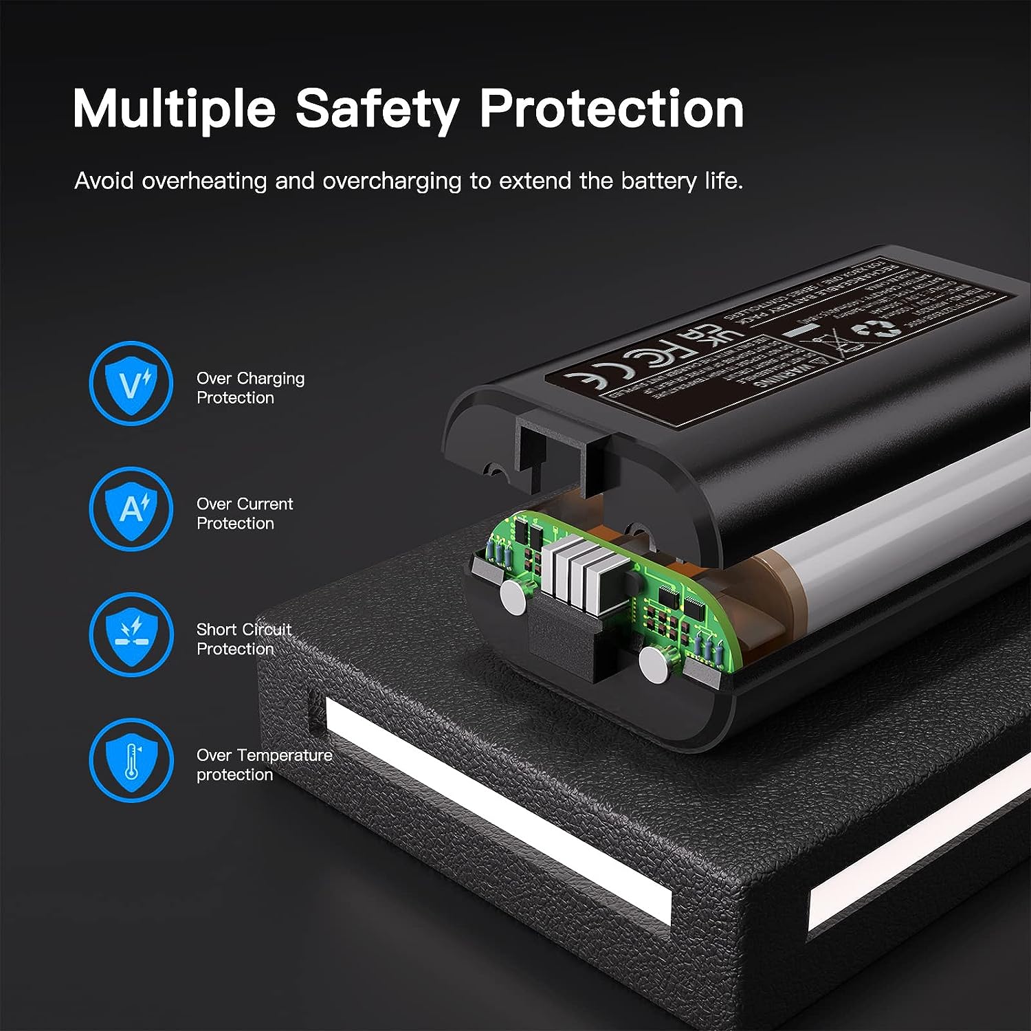 1000+ rechargeable cycles. Built-in over-voltage, short-circuit, and