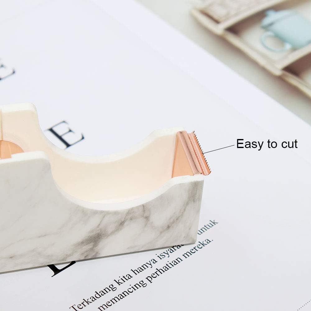 Acrylic Adhesive Heavy Duty Nonslip Tape Dispenser - Marbled Texture Rose Gold