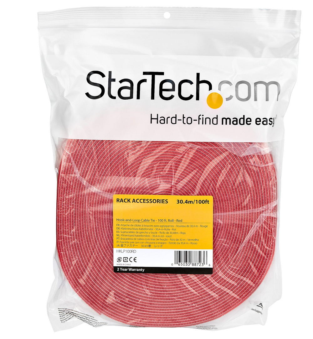 StarTech Hook and Loop Tape 100 ft Roll -Red