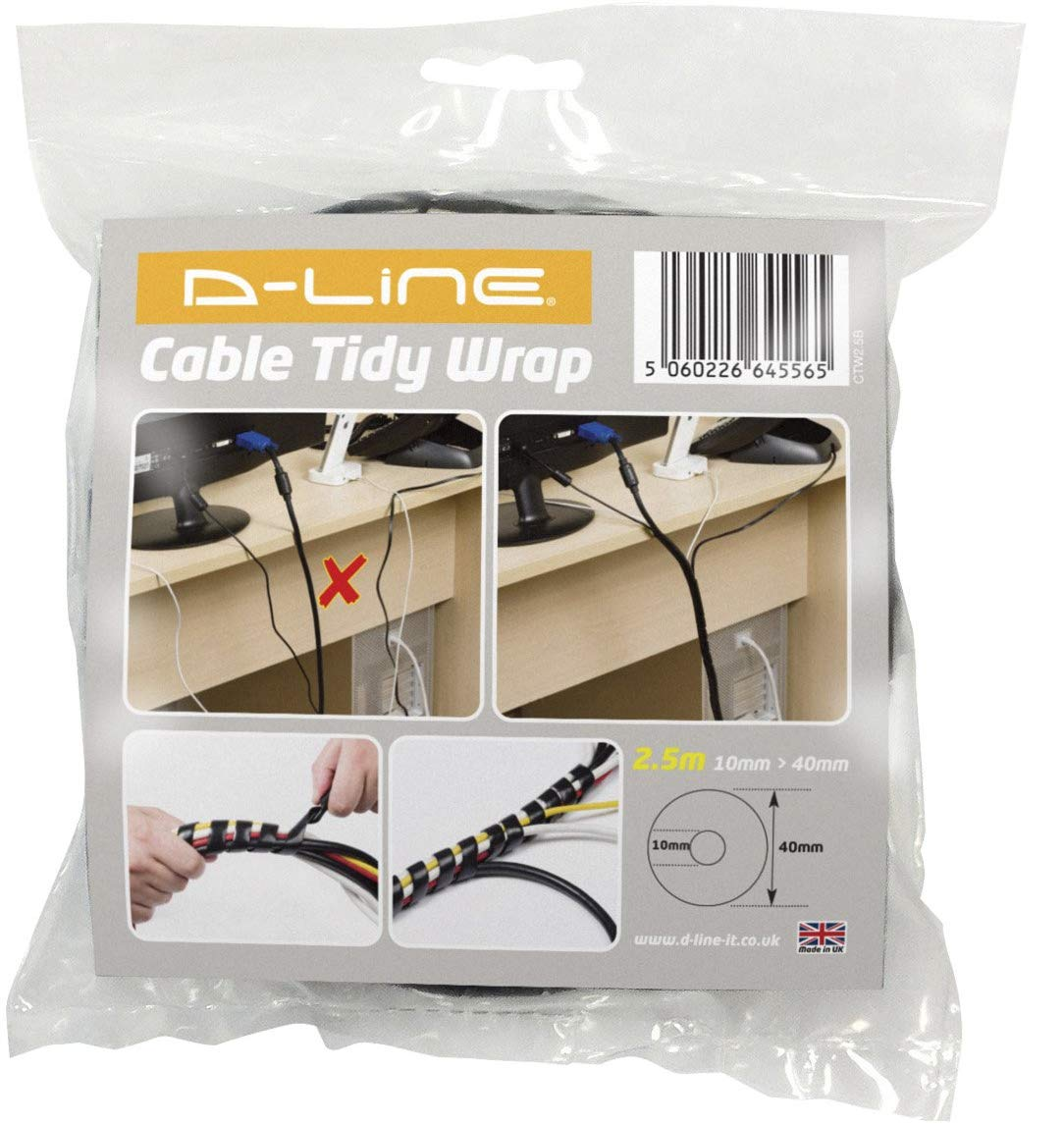 D-Line - Cable Tidy Wrap, 0.25" - 2" Diameter x 98" Long, Black CTW25B
