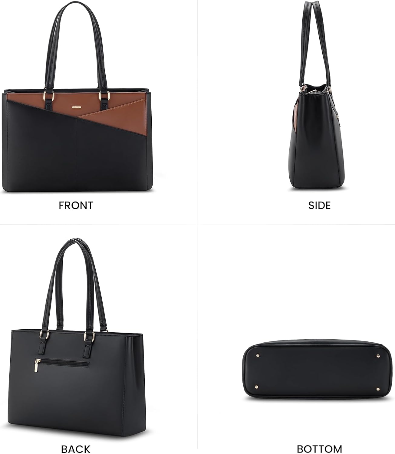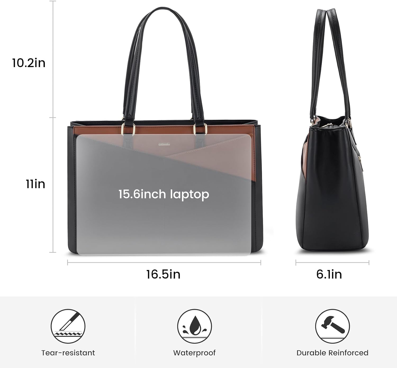 LOVEVOOK Laptop Tote Bag 15.6" Large Capacity Laptop Bag - Black & Brown
