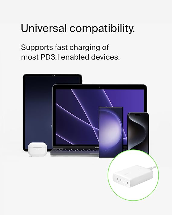 - UNIVERSAL COMPATIBILITY: For the best charging performance possible, this 4-port charger supports fast charging of most PD3.1 (EPR) / PD3.0 enabled devices. Charge more and worry less by eliminating the need to use multiple charging devices at once.