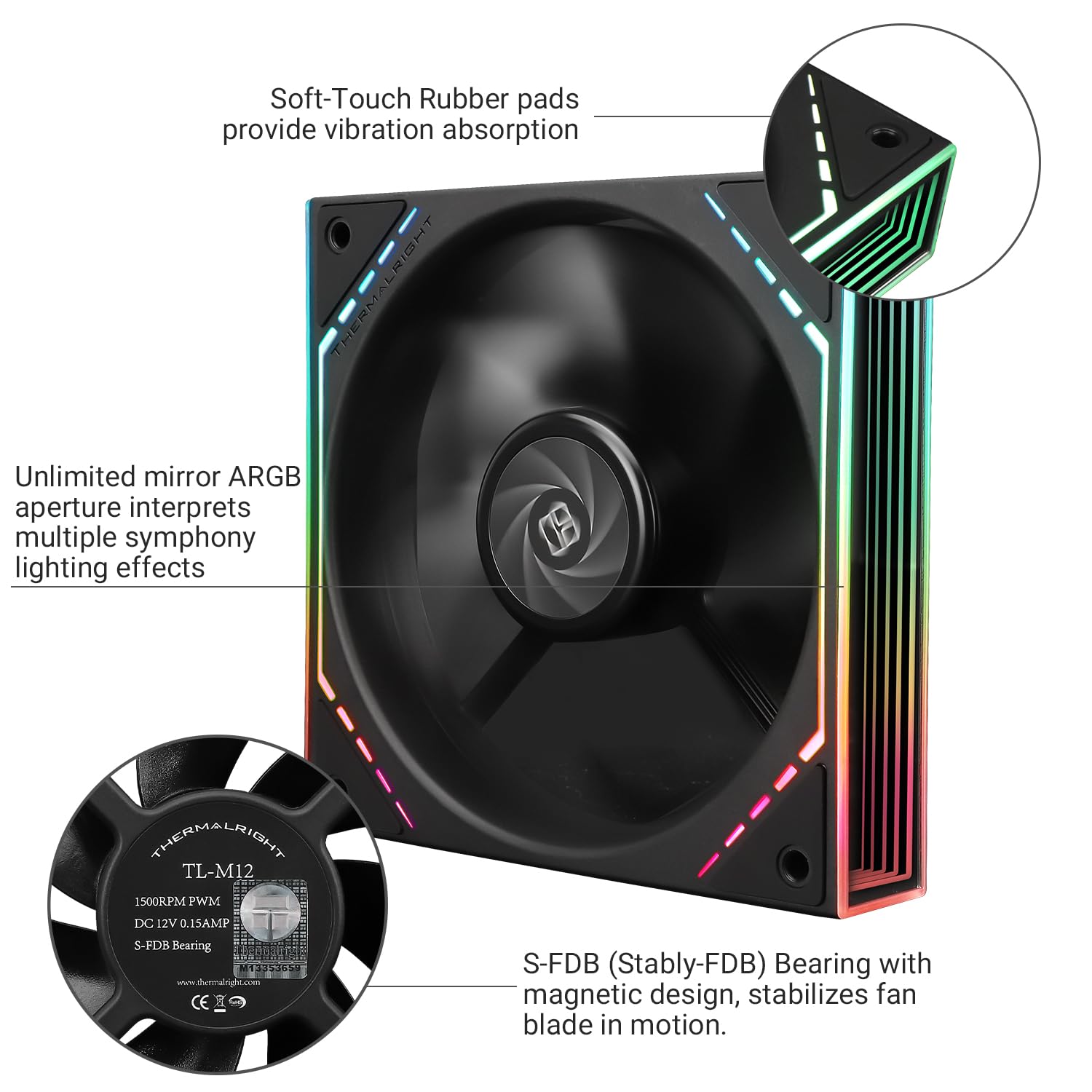 Thermalright TL-M12 Case Fan 120mm ARGB CPU Cooler - Silent PMW Fan - Black