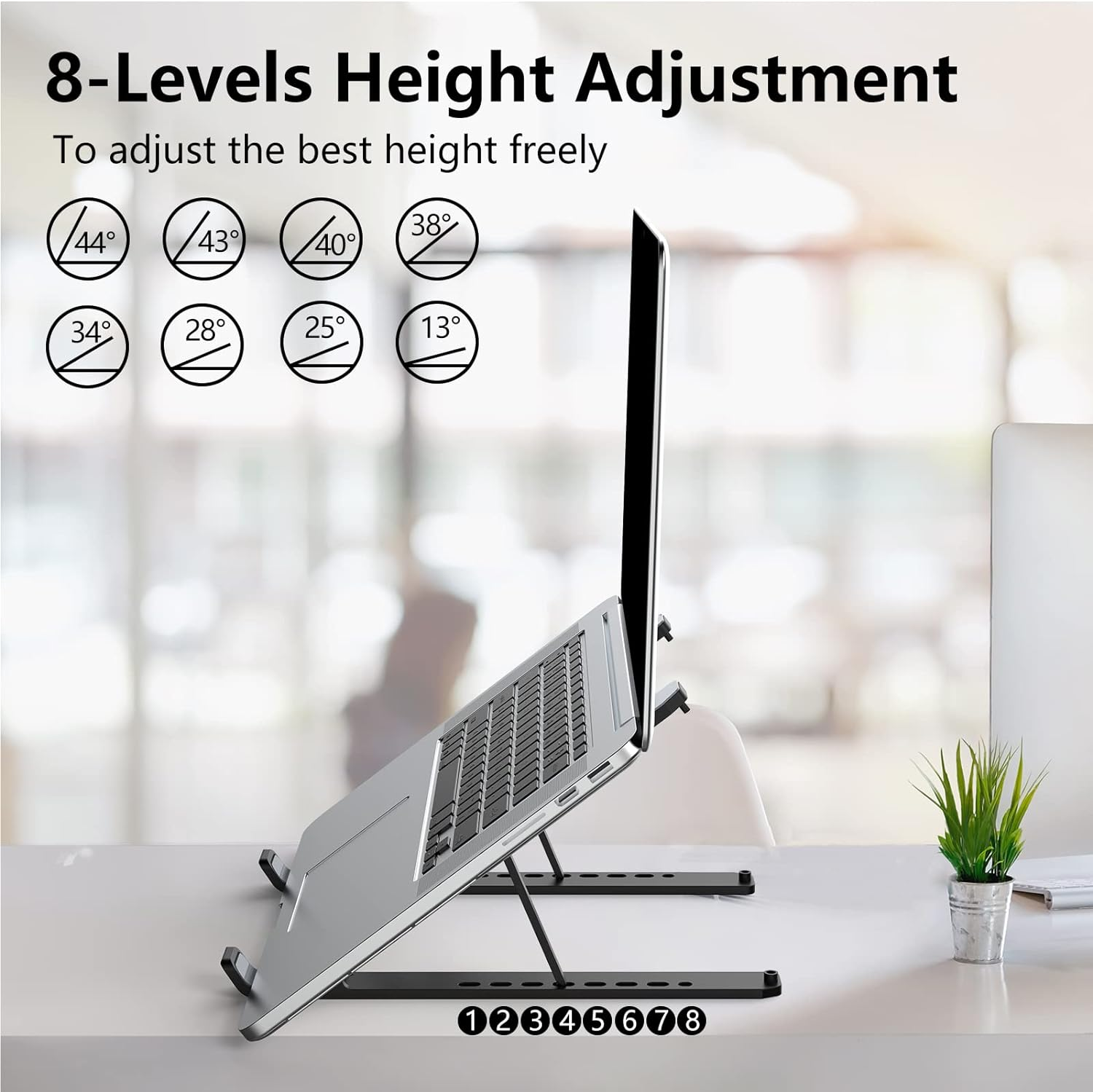 - ✅【Portable & Foldable】:This portable laptop stand only weighs 0.8 pounds and can be quickly folded into a small size of 9.52” x 2” x 0.9”. Easy to carry anywhere with a durable sleeve bag. Ideal for people who travel for business a lot.