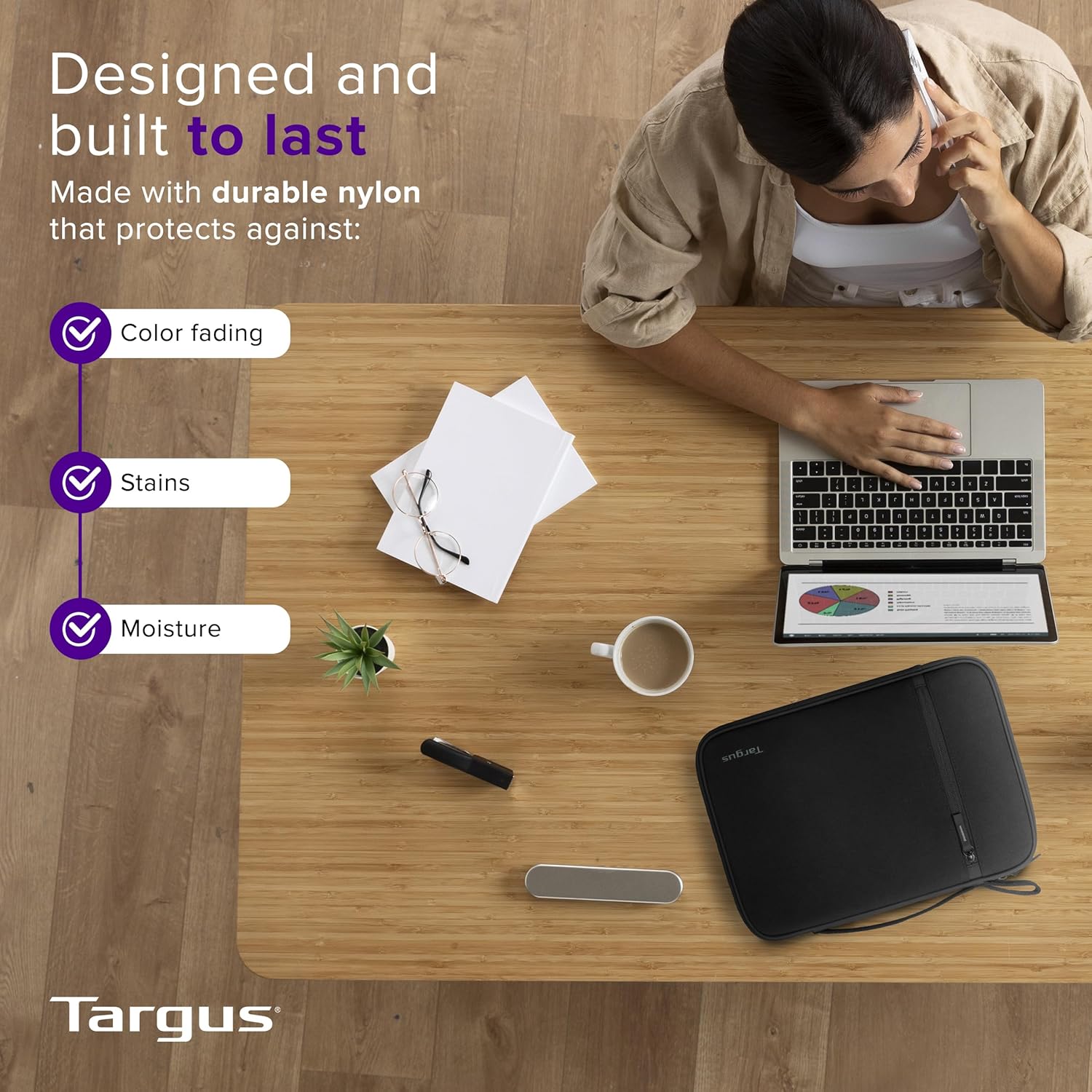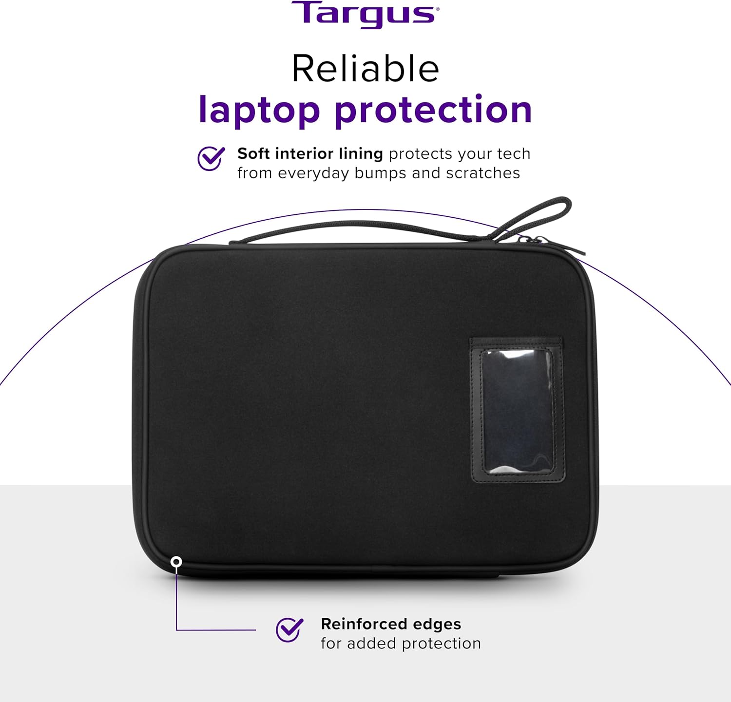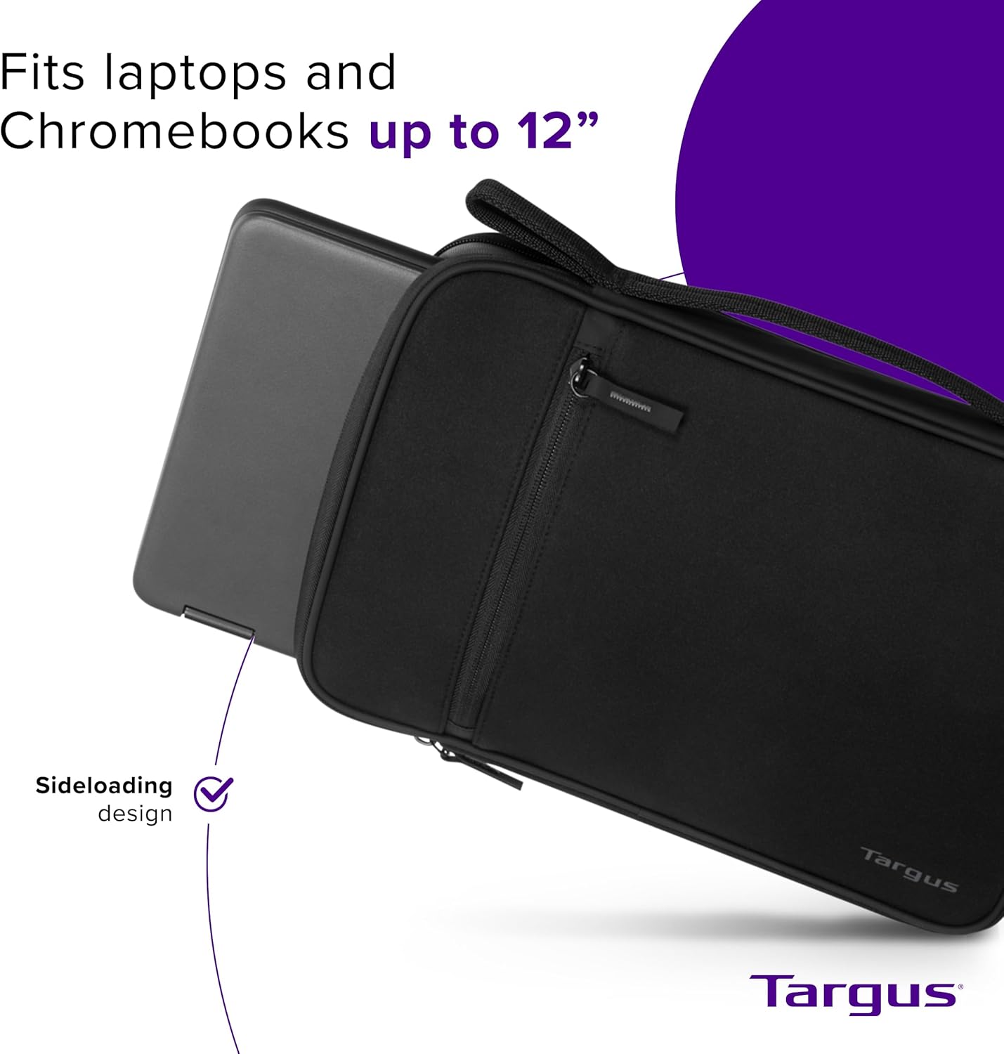 - Compact Travel Sleeve: Protect your laptop and necessary accessories with the Targus 11–12" Sideloading Sleeve. This sleeve is a sleek, basic case that covers and protects your essentials without compromising on function