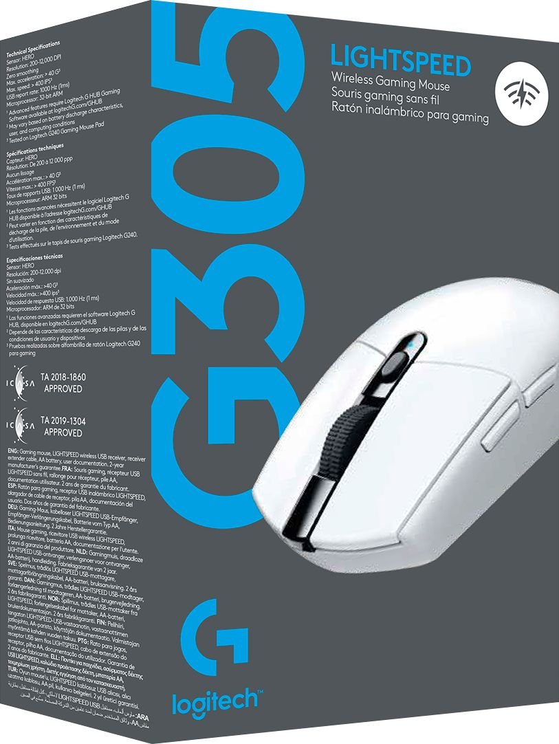 Logitech G305 Lightspeed Wireless Optical Gaming Mouse - 6 Programmable Buttons (12,000 DPI) - White