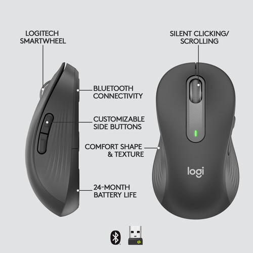 Logitech Signature M650 L Left Handed Wireless Mouse - Graphite
