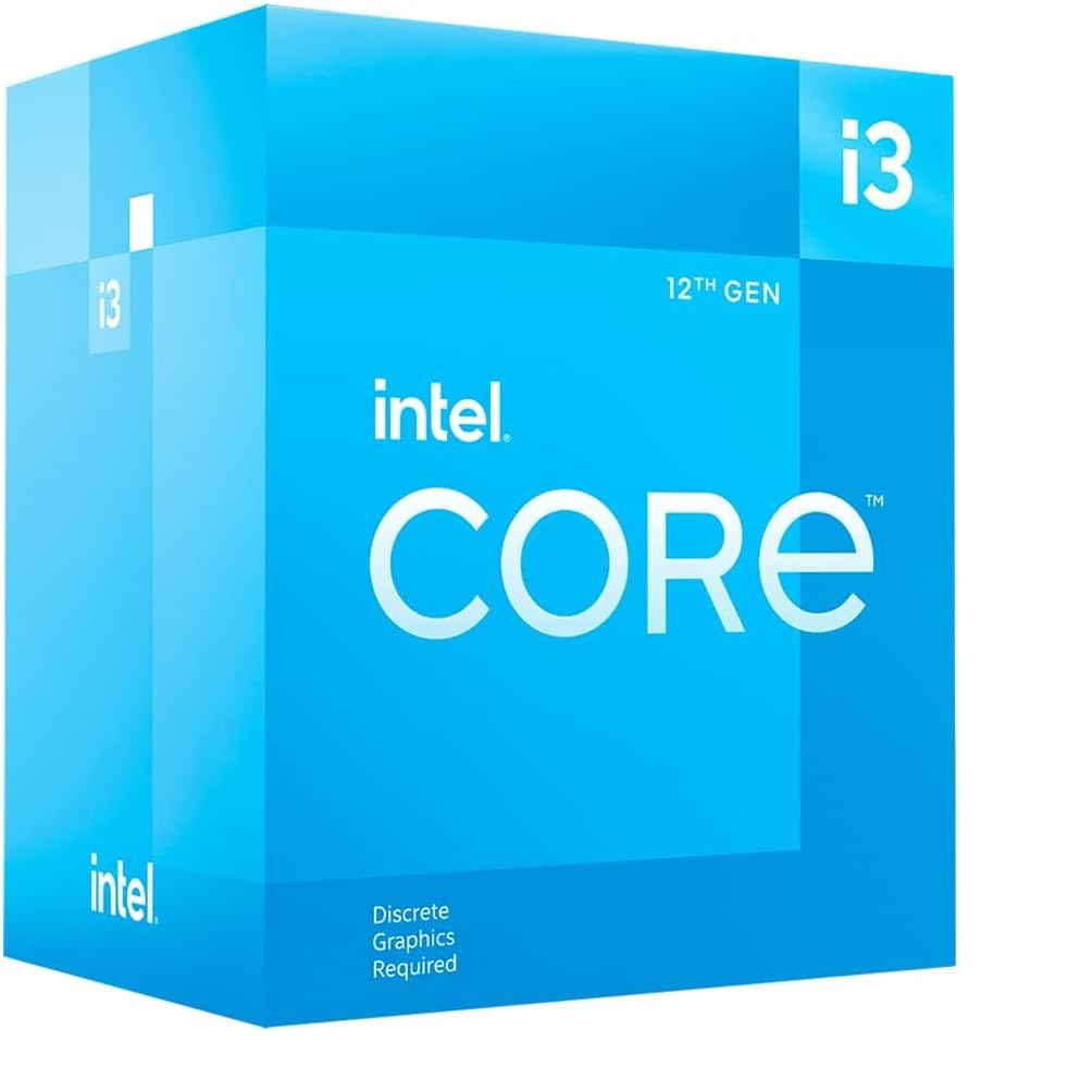 Intel® Core™ 12th Gen i3-12100F desktop processor, featuring PCIe Gen 5.0 & 4.0 support, DDR5 and DDR4 support. Discrete graphics required.