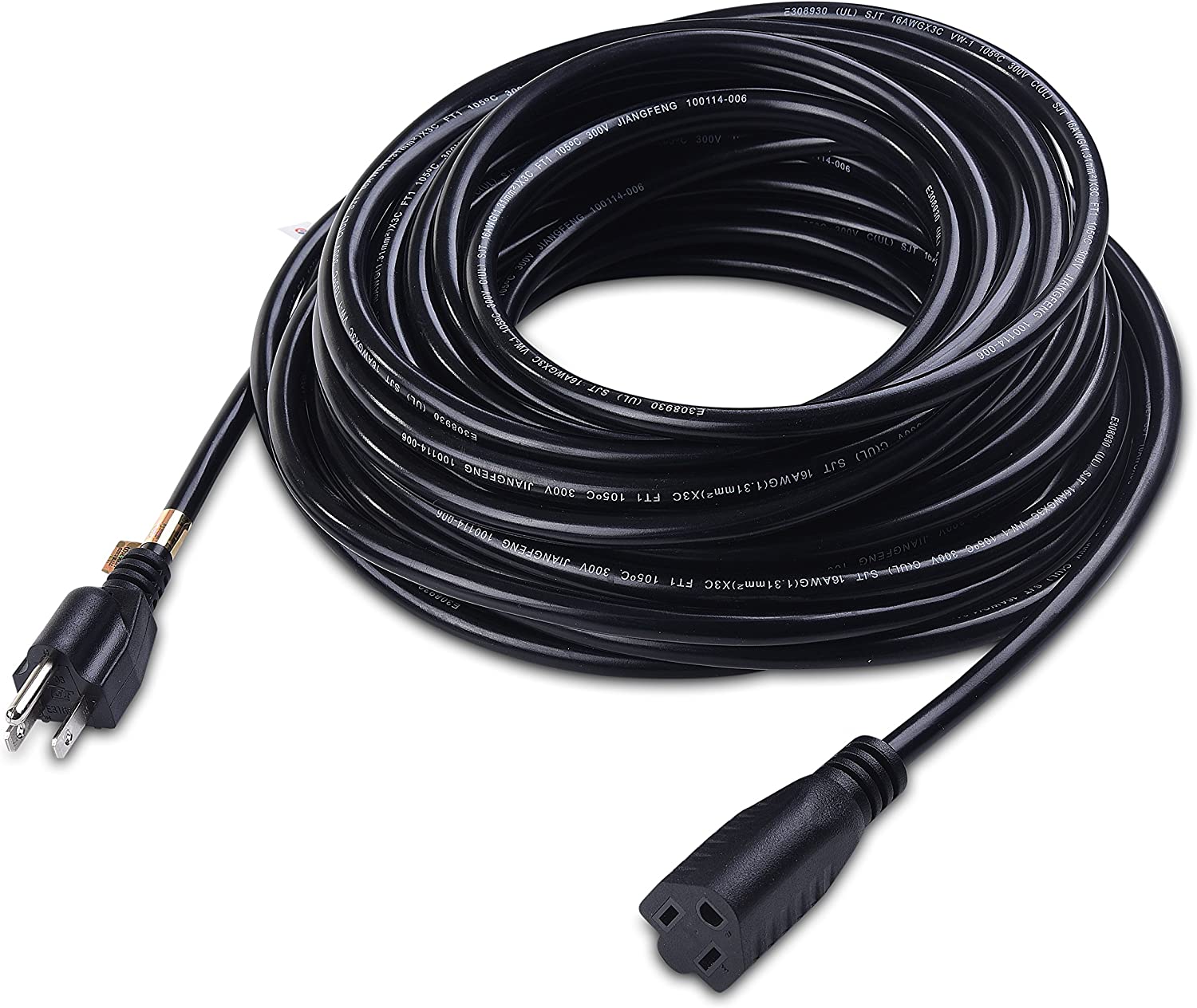 - Sturdy but flexible grounded extension cord is safer and more reliable at longer distances than a thinner 18 AWG power cable extension; Fully molded strain relief connectors provide long life and durability