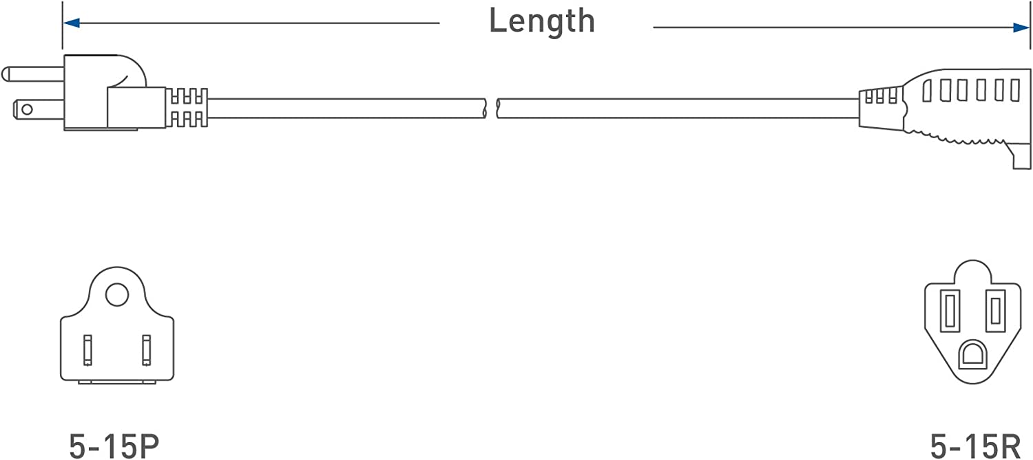 - Heavy duty power cord extension with a standard NEMA 15-5-P grounded power plug and 3 pin female NEMA 5-15R connector; SJT 13A/1625W rating easily extends a TV power cord from an HDTV with a power consumption