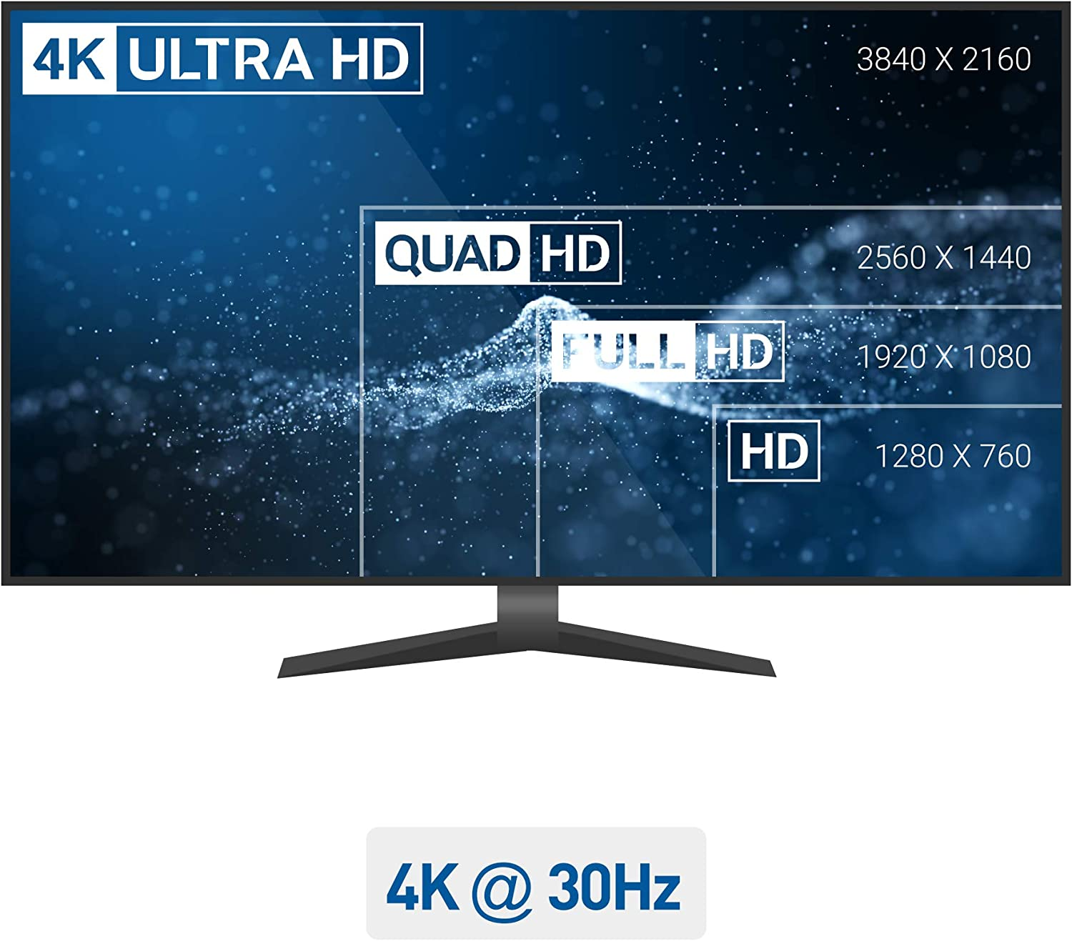- 4K Video Resolutionsupport up to 3840x2160 @ 30Hz including 1920x1080 @ 60Hz and 2560x1440 @ 60Hz with the HDMI Display Port adapter (when supported by your video card)