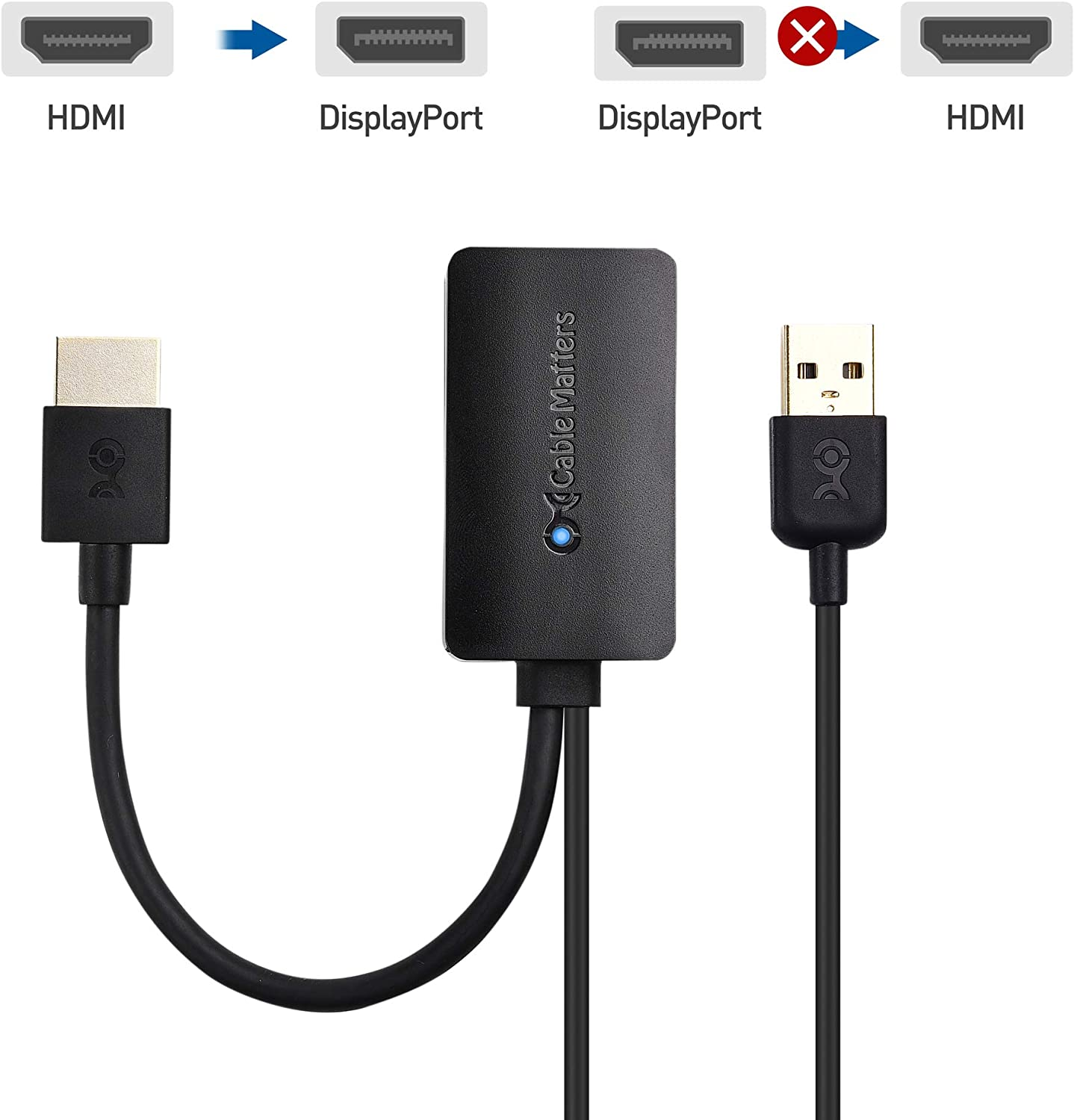 Cable Matters HDMI to DisplayPort Adapter (HDMI to DP Adapter) with 4K Video Resolution Support
