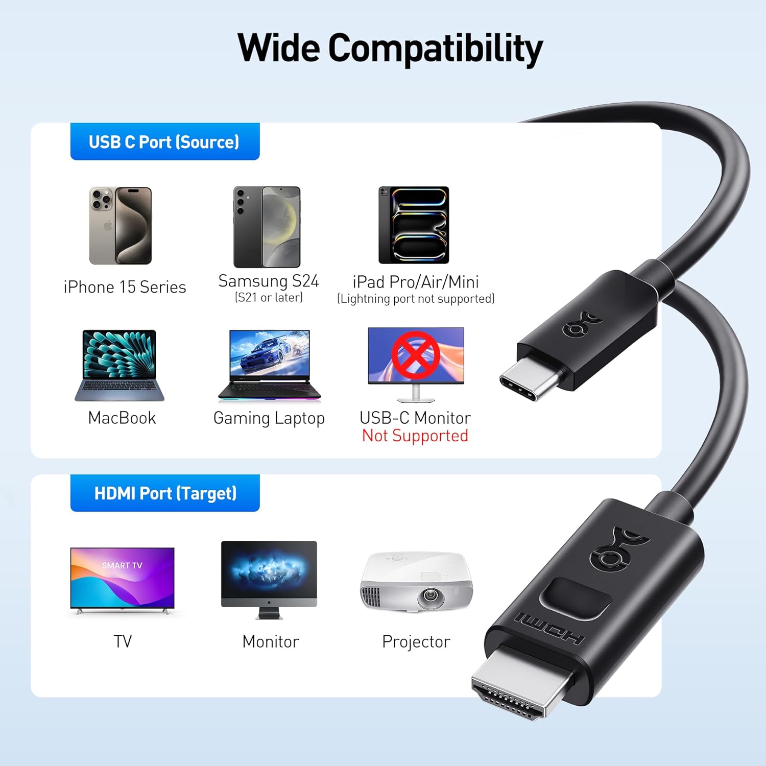 - Versatile Compatibility: The USB C to HDMI cable is versatile, supporting a wide range of devices including laptops, tablets, and smartphones like MacBook Pro / Air, Dell XPS, ThinkPad, HP Spectre, iPad Pro. It is perfectly suited for systems with USB4 or Thunderbolt ports, making it an essential accessory for modern tech environments.