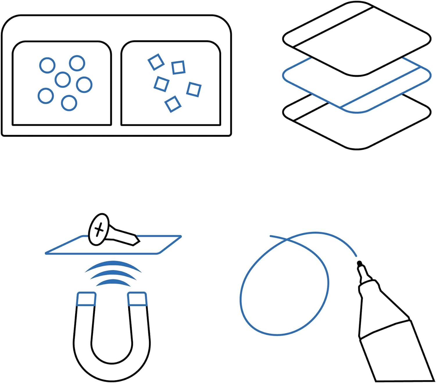 parts: lay them on the magnetic, gridded, dry-erase surface, or drop them in